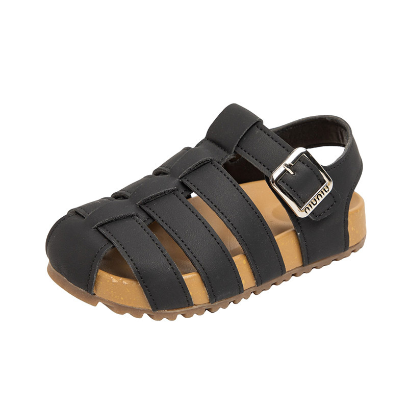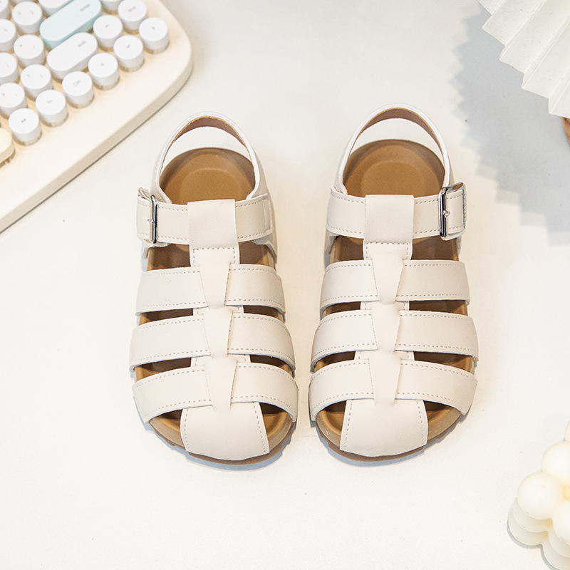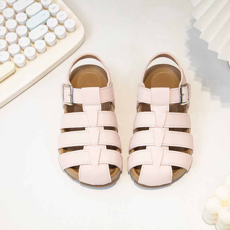 简约休闲纯色款小童编织镂空鸟巢鞋2025年夏季男女童百搭沙滩凉鞋