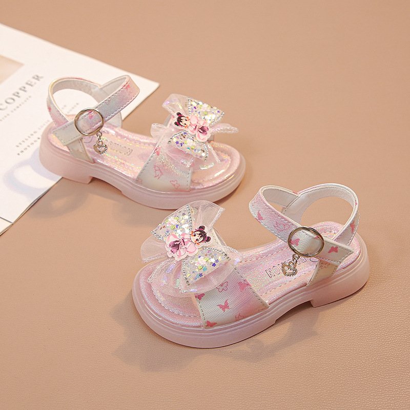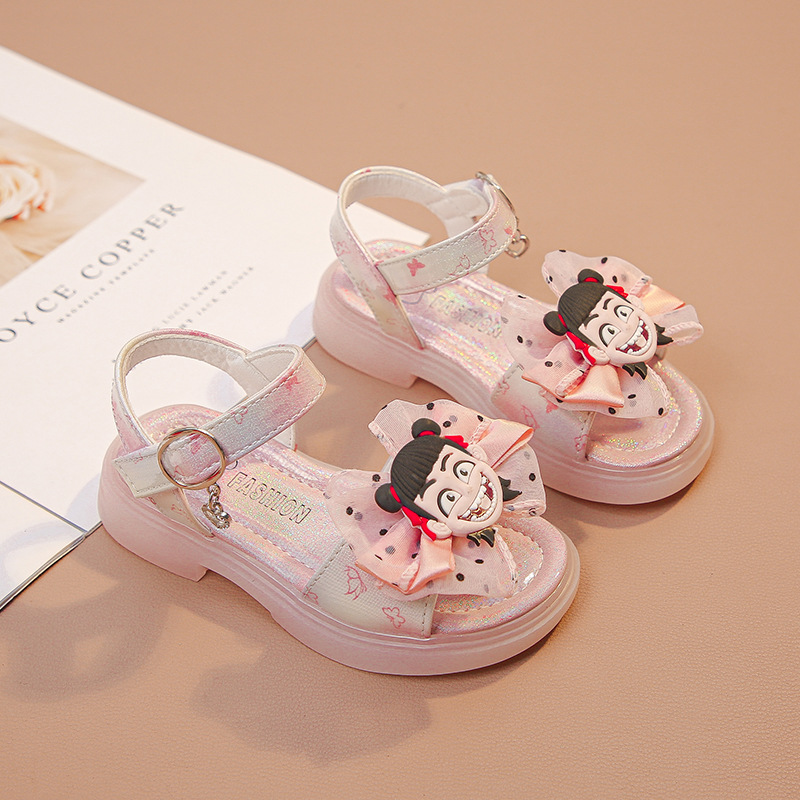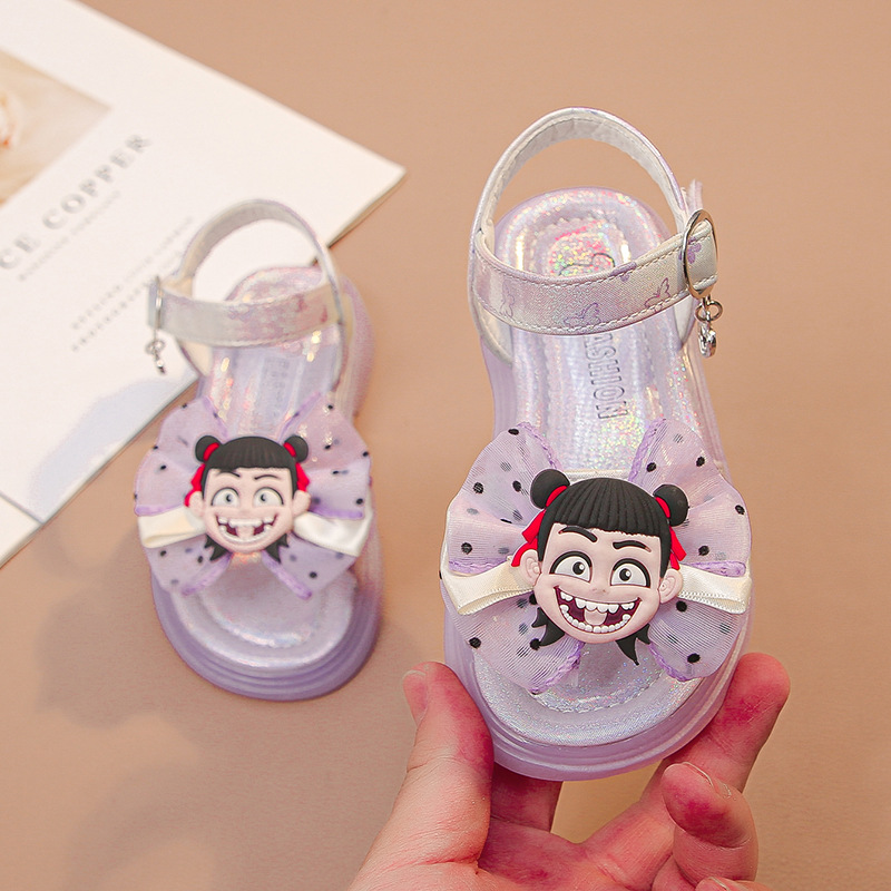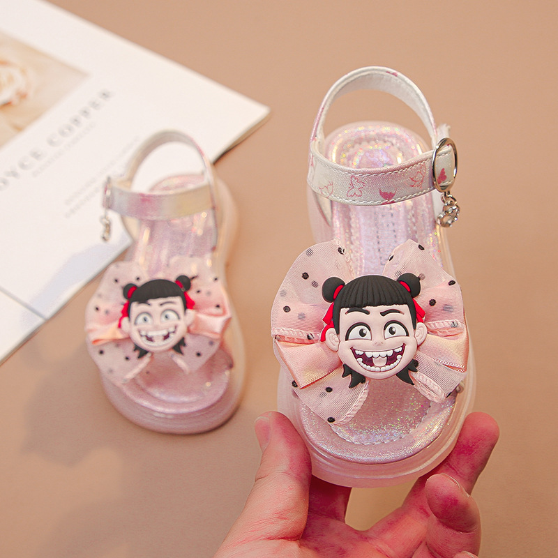 女童卡通哪吒凉鞋儿童公主鞋2025夏季新款小女孩露趾水晶鞋沙滩鞋