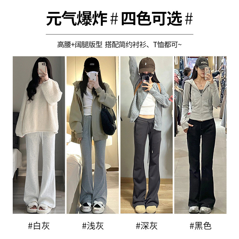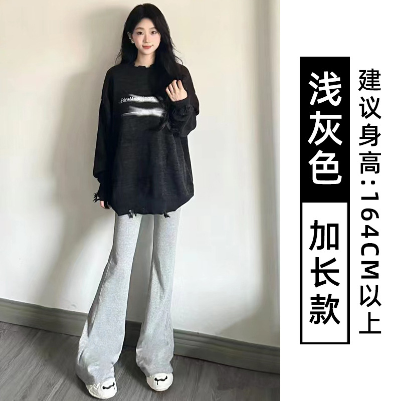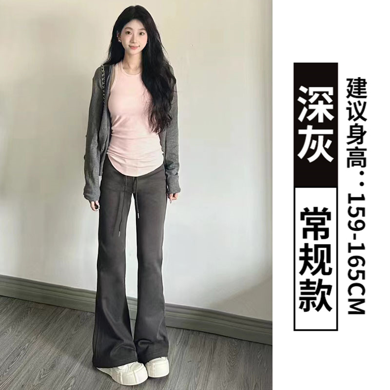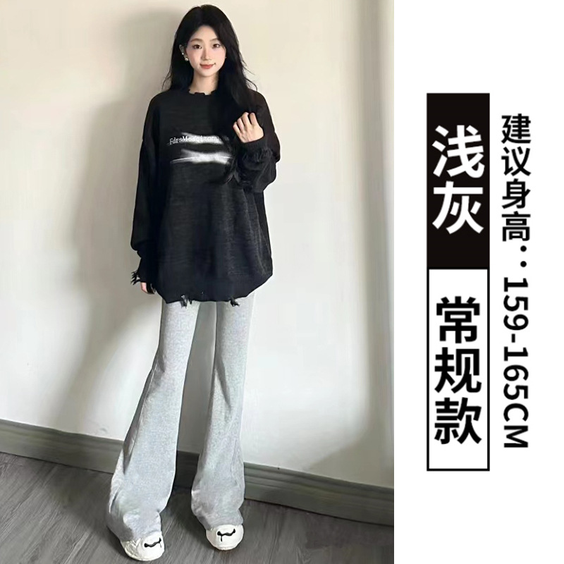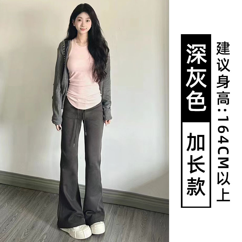 美式灰色高腰微喇裤辣妹显瘦拖地百搭新款运动休闲卫裤瑜伽裤