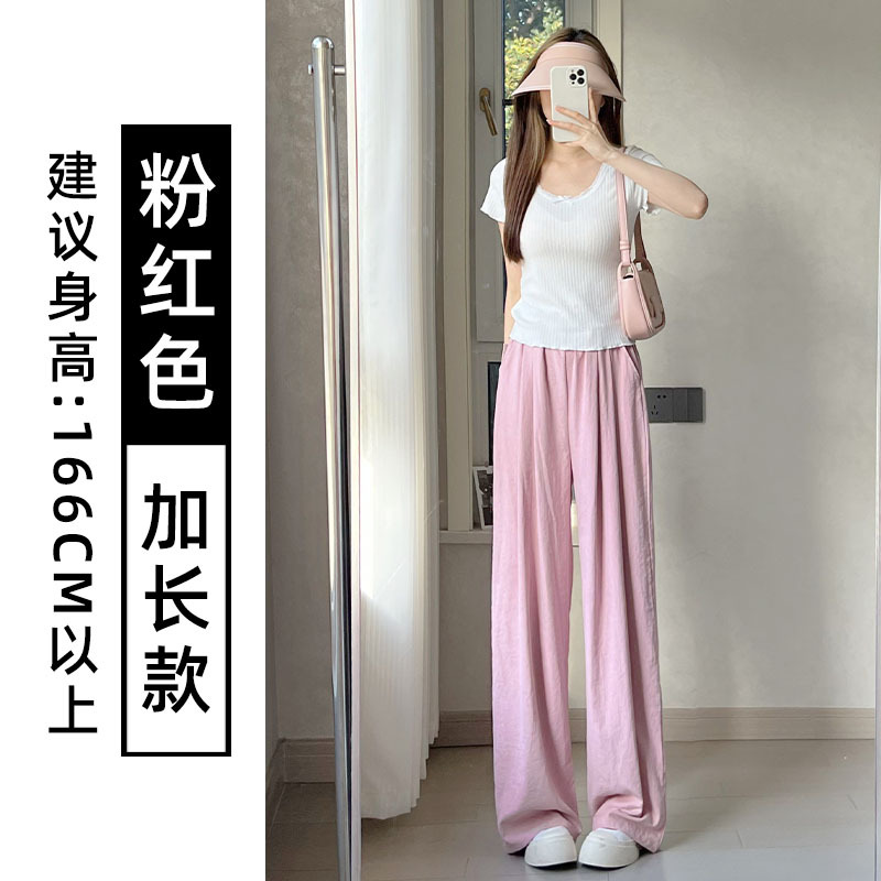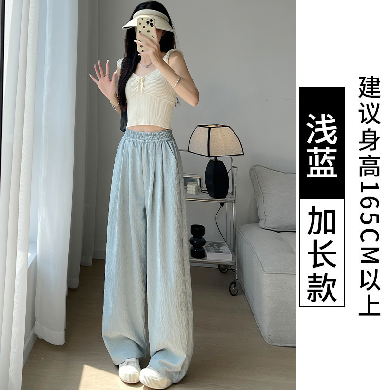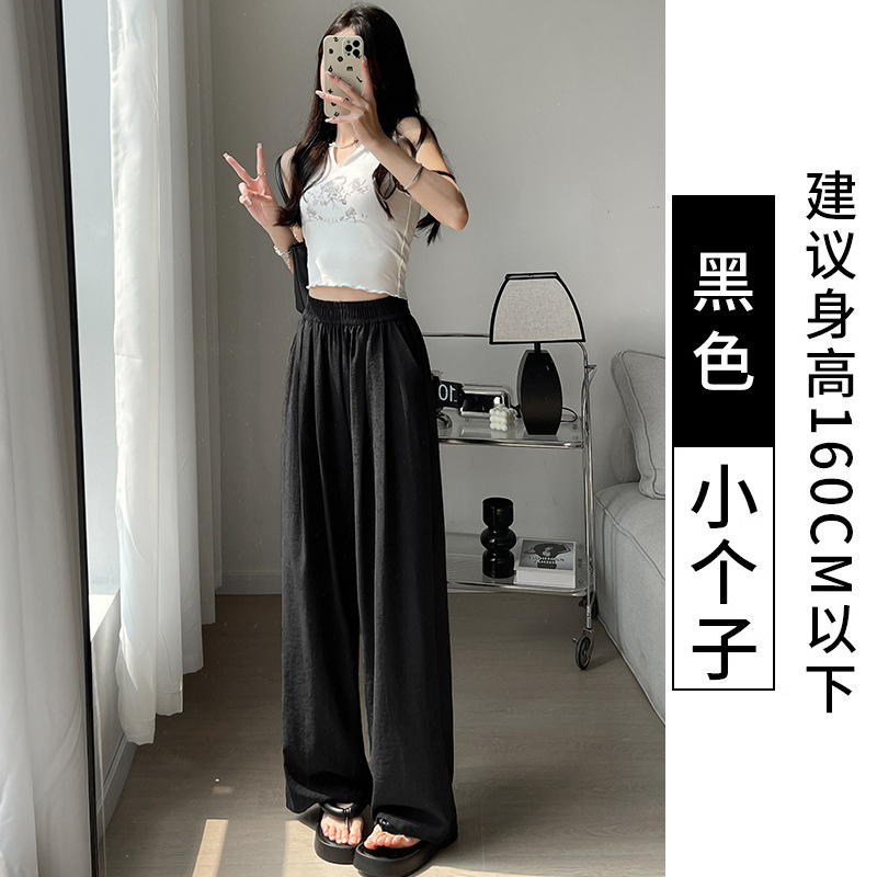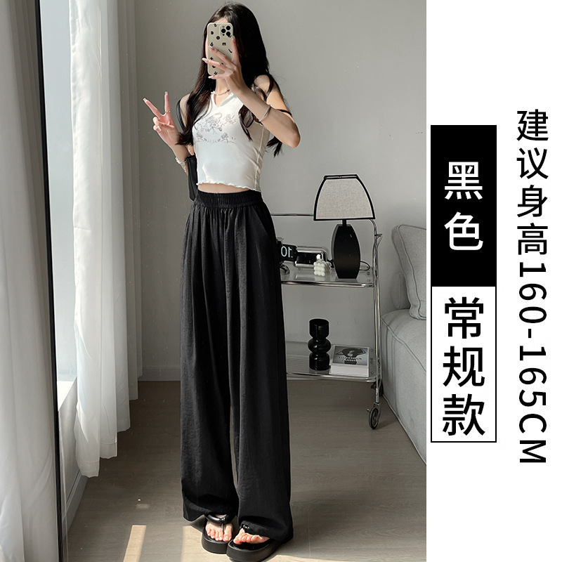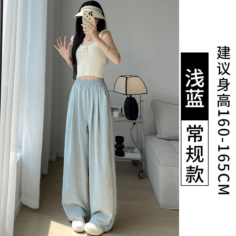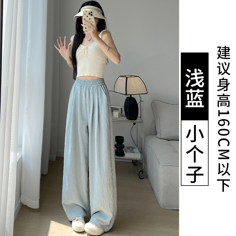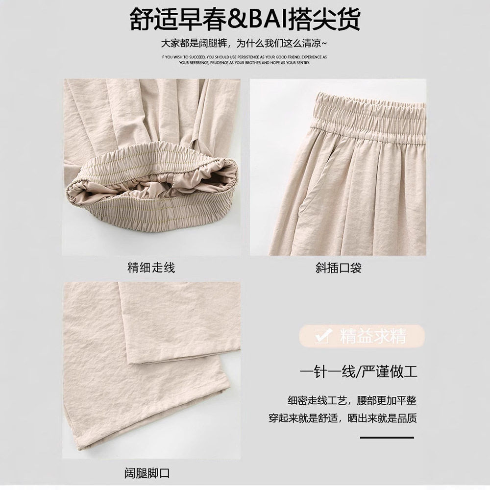 抖音质量米白色奶芙裤山本裤女2025新款高腰冰丝阔腿裤醋酸肌理感