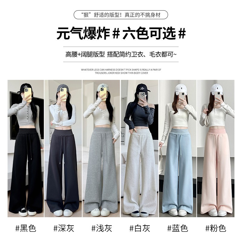 抖音质量收腰运动裤子女2025春夏新款休闲显瘦垂感卫裤直筒阔腿裤