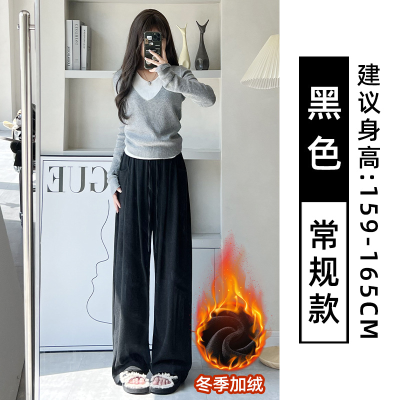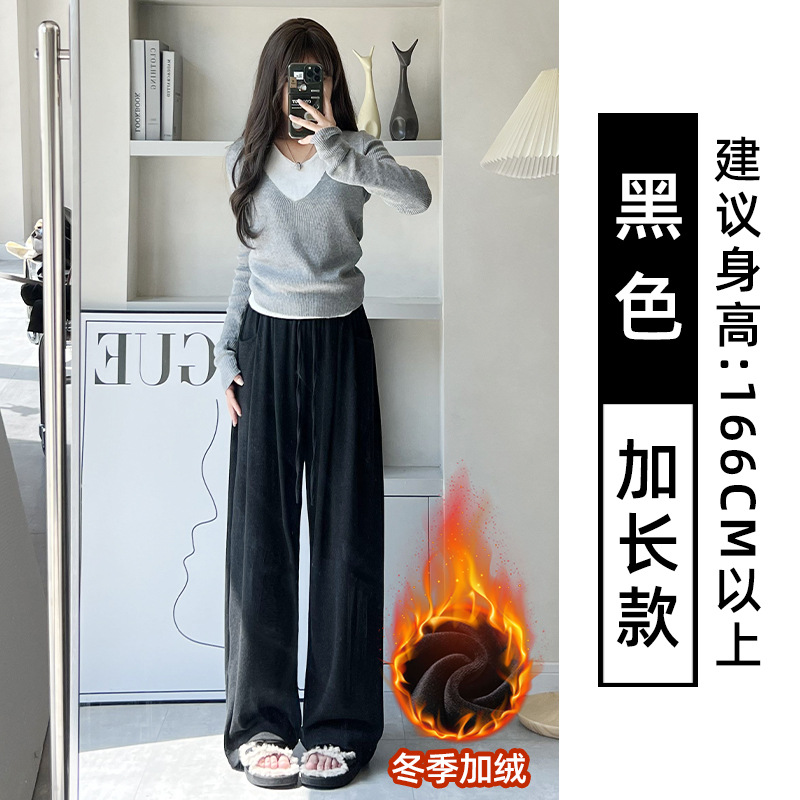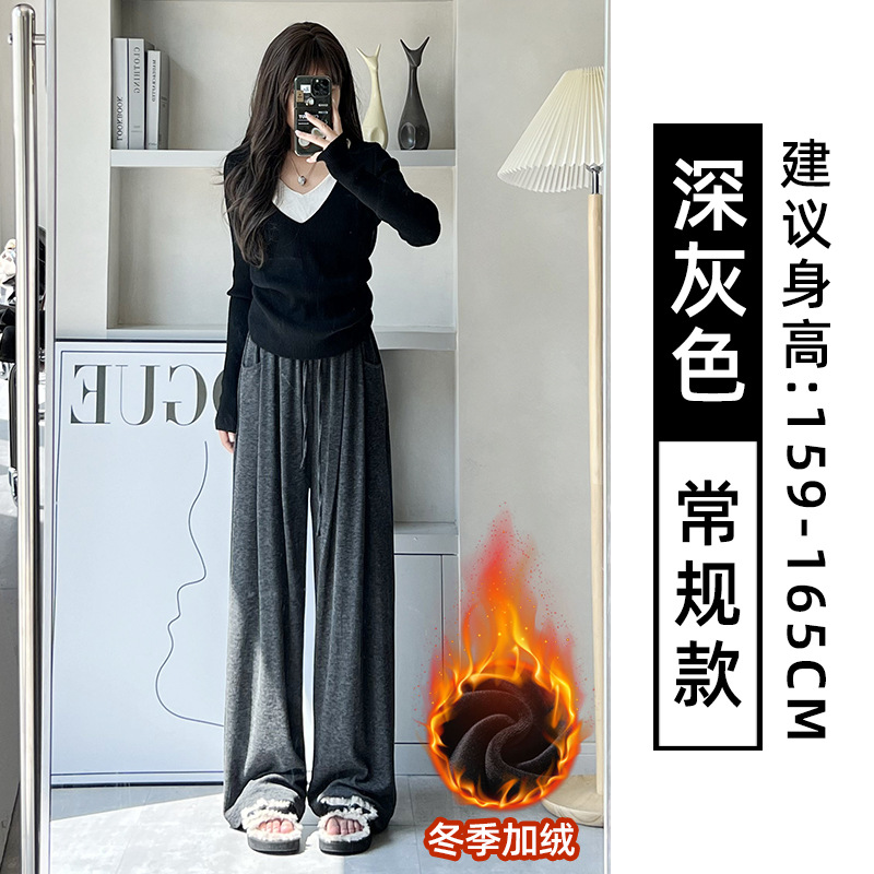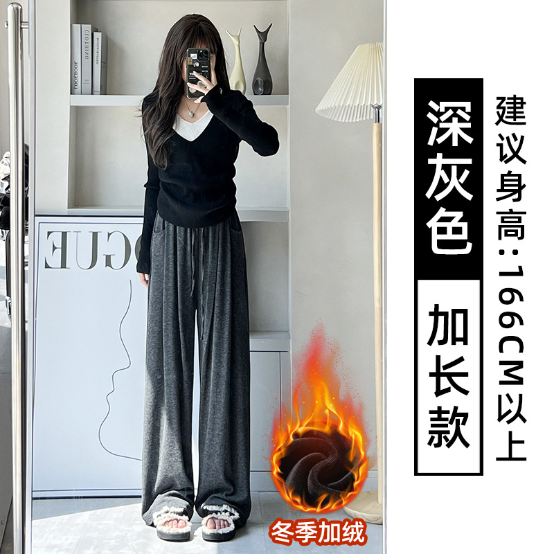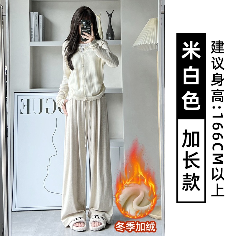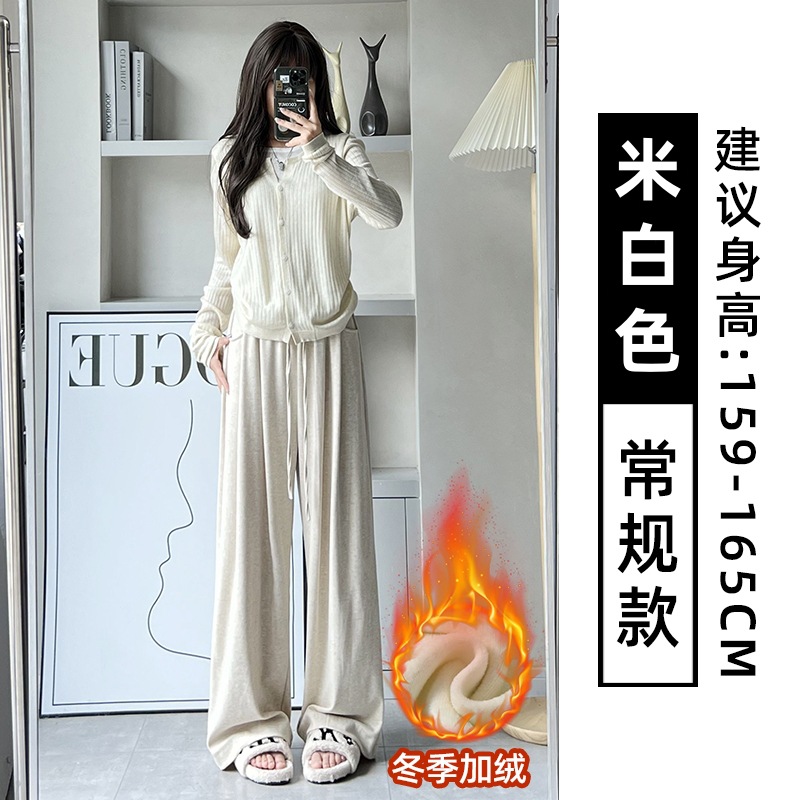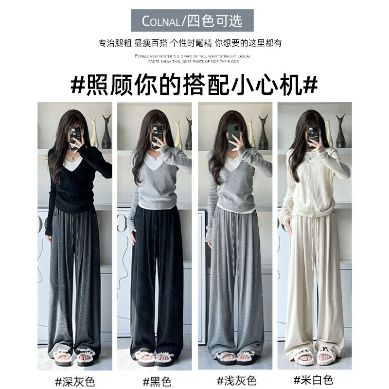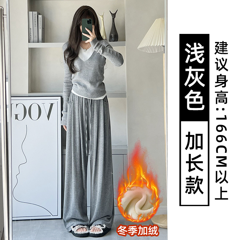 抖音质量糯米裤女秋冬加绒加厚拖地垂坠感宽松休闲运动阔腿裤