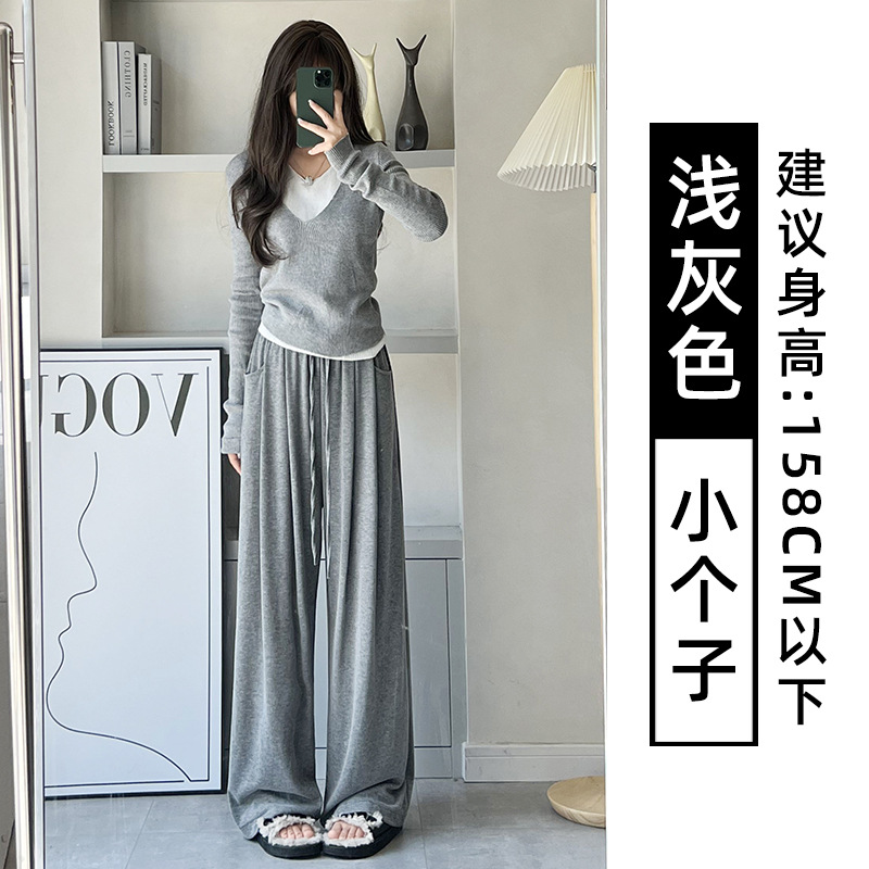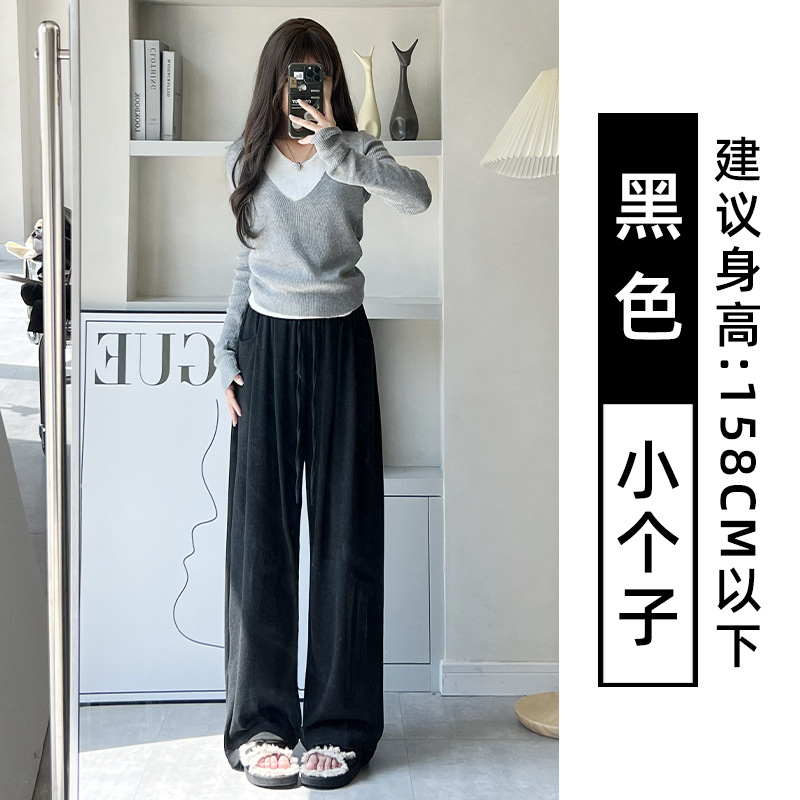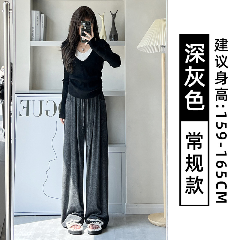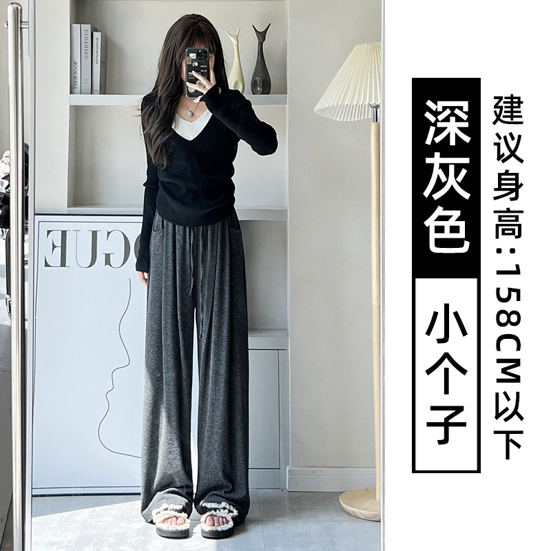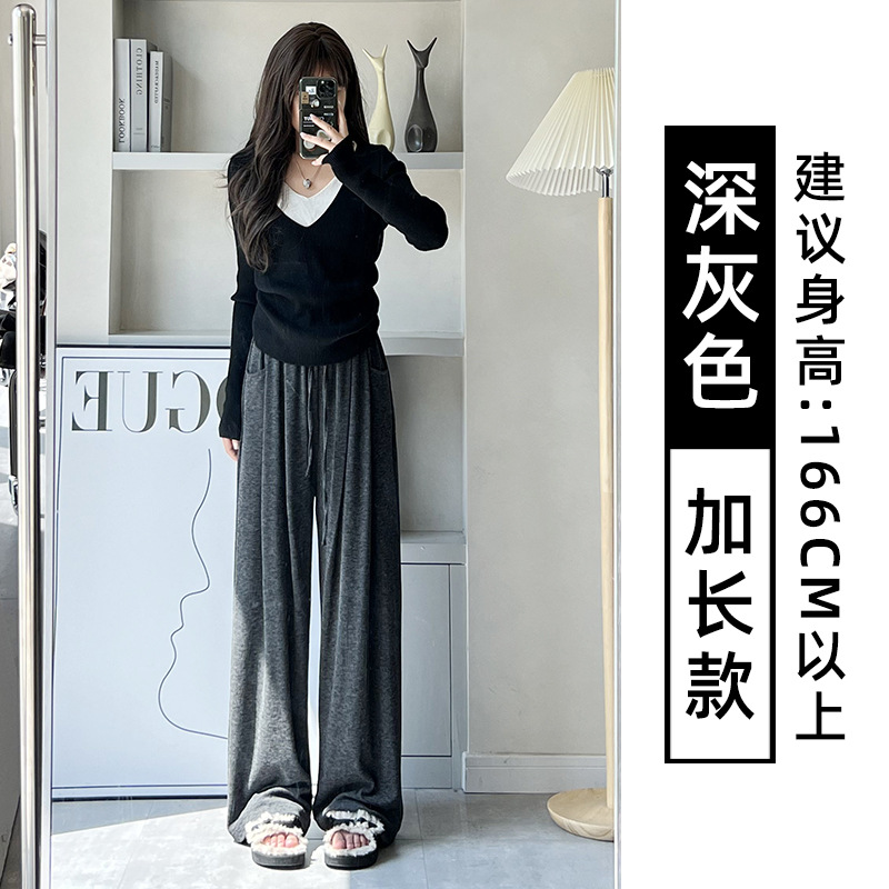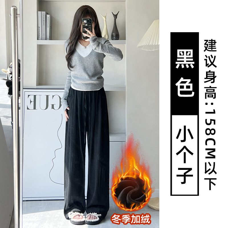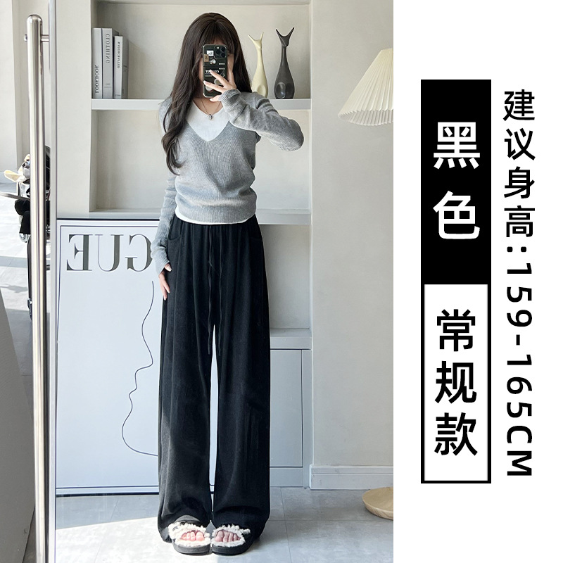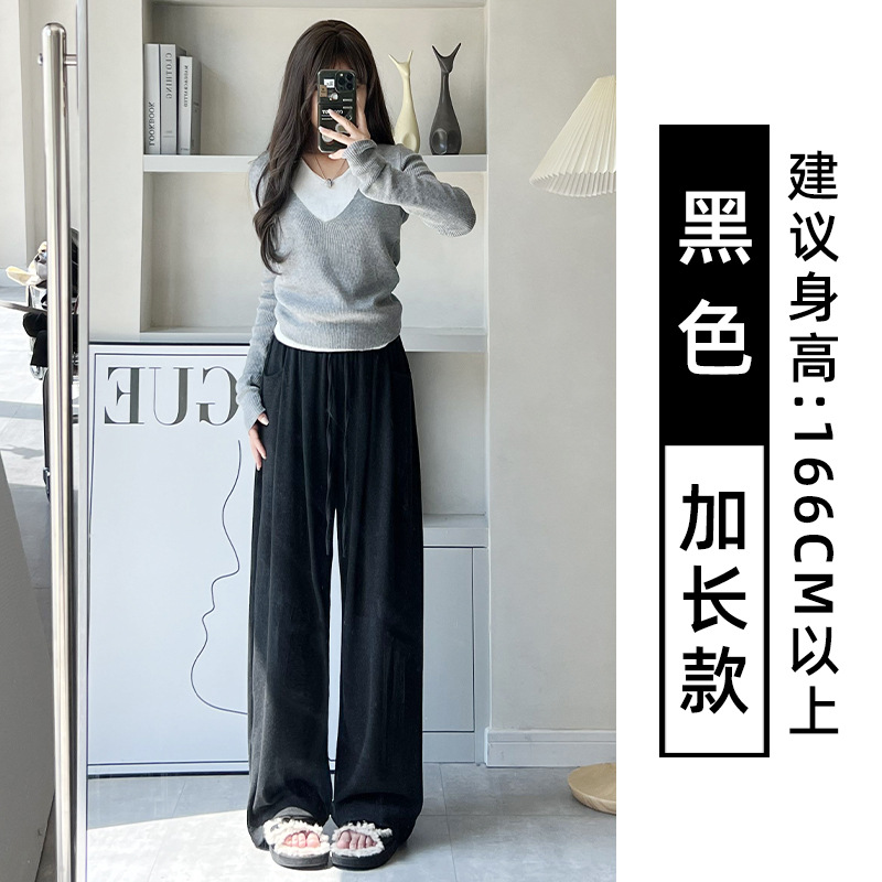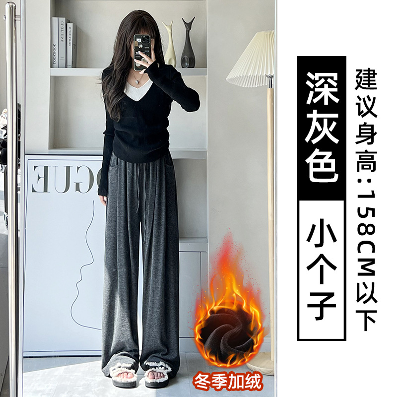 抖音质量糯米裤女秋冬加绒加厚拖地垂坠感宽松休闲运动阔腿裤