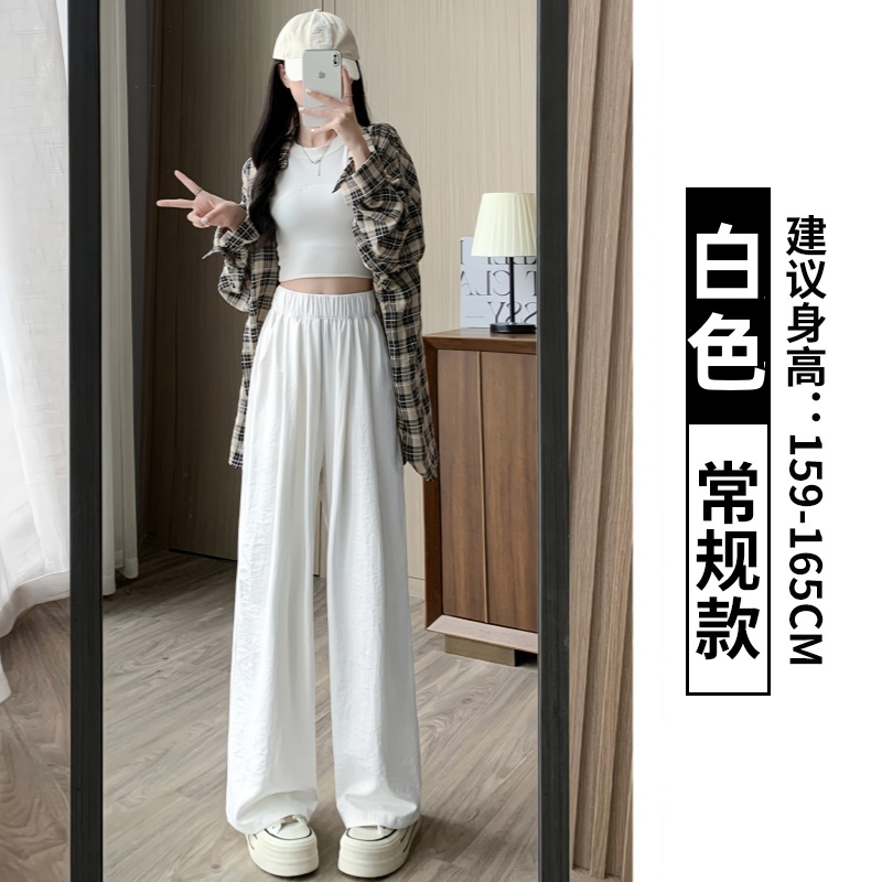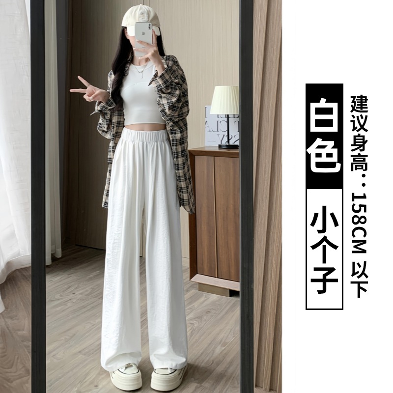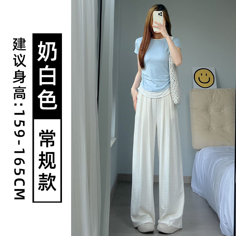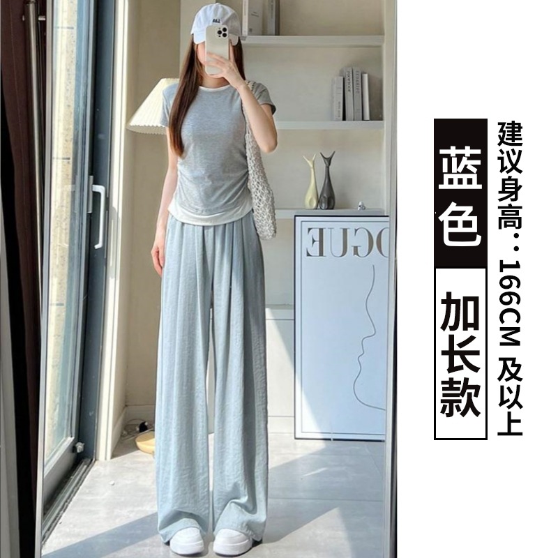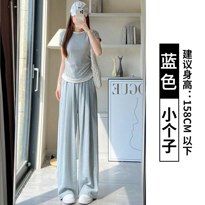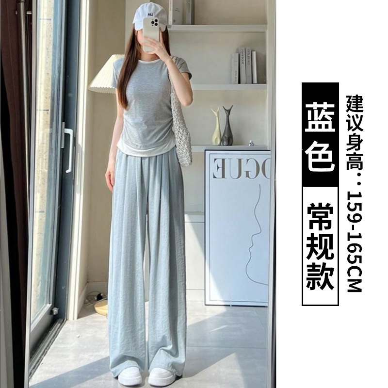抖音质量蓝色冰丝山本裤2025夏季高腰显瘦直筒奶芙裤肌理感阔腿裤
