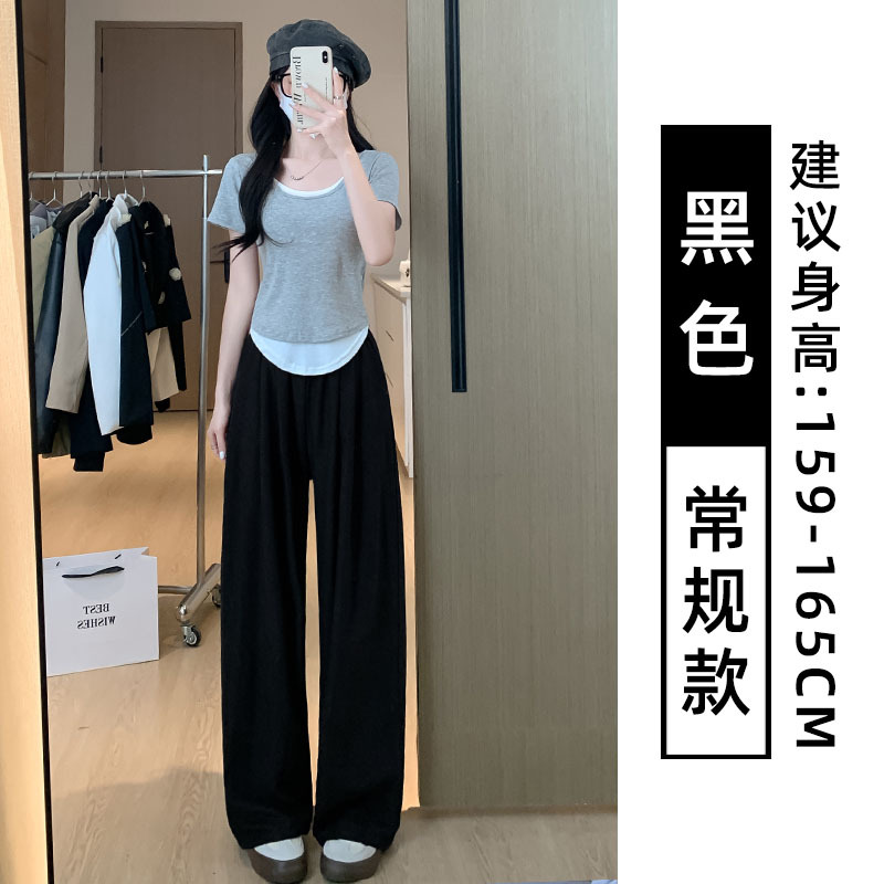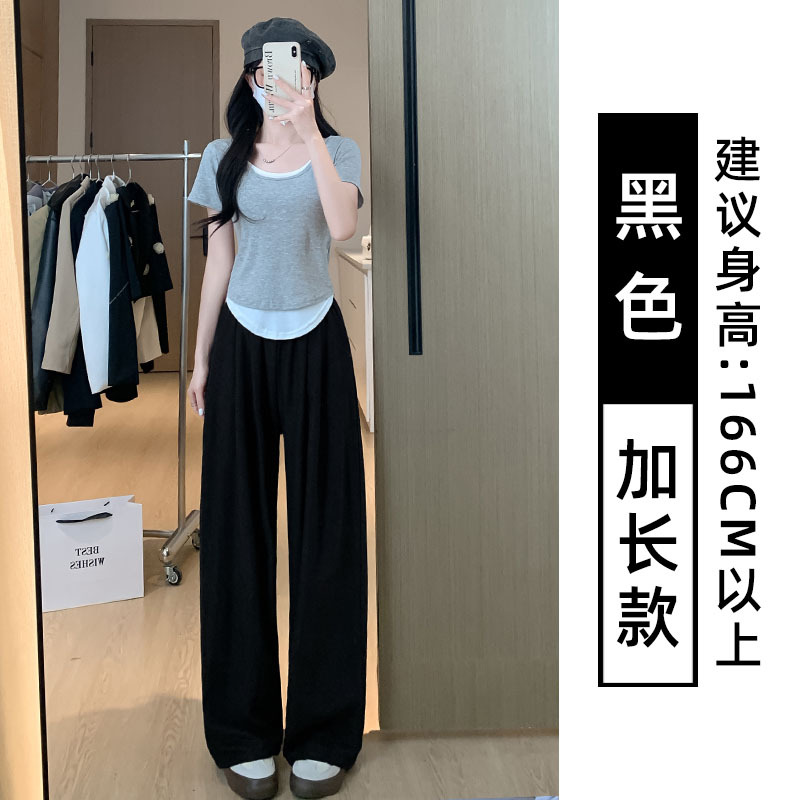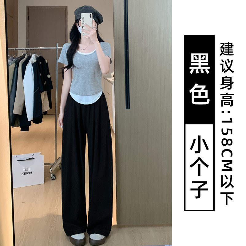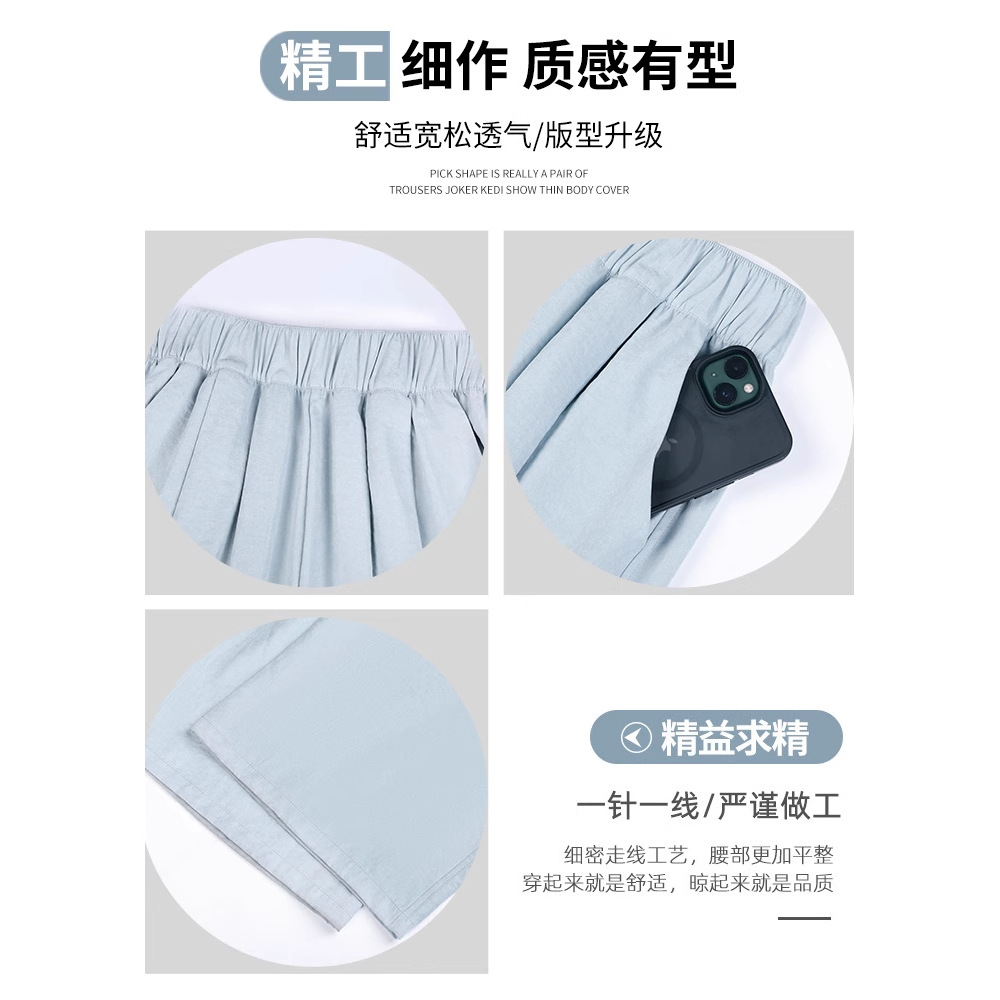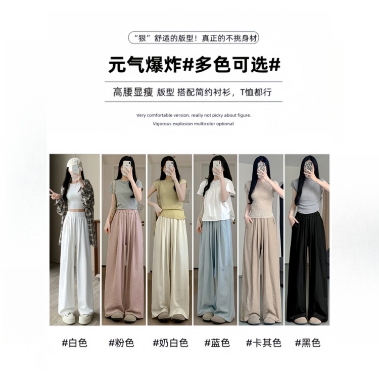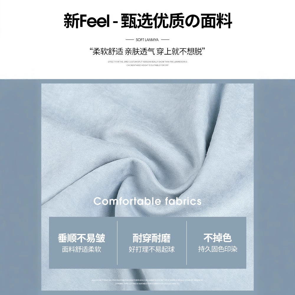 抖音质量蓝色冰丝山本裤2025夏季高腰显瘦直筒奶芙裤肌理感阔腿裤