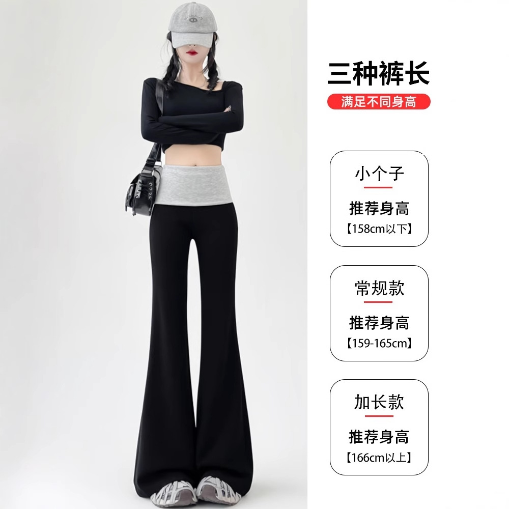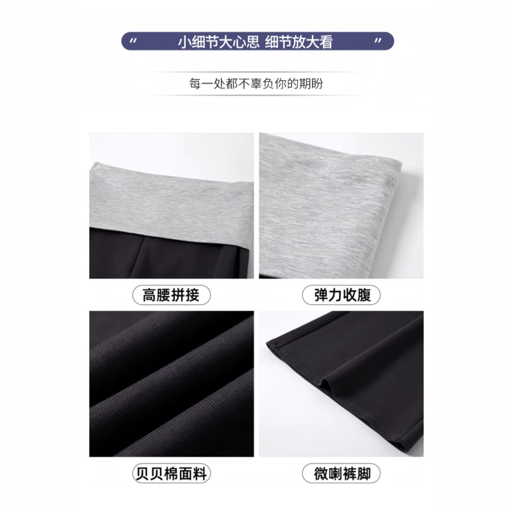 抖音质量美式黑色休闲微喇叭裤女2025新款显瘦百搭拼接阔腿运动裤