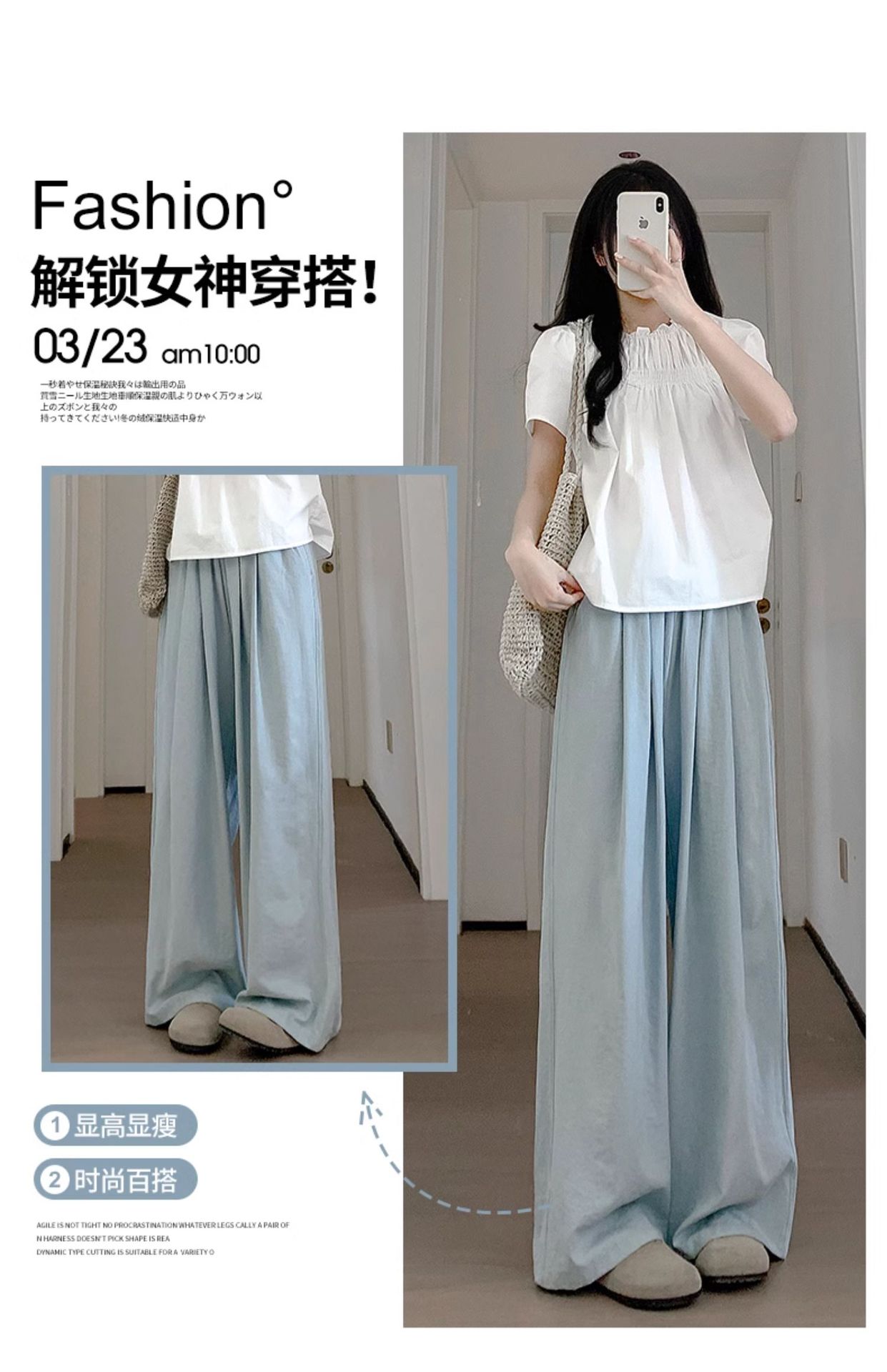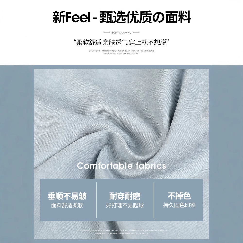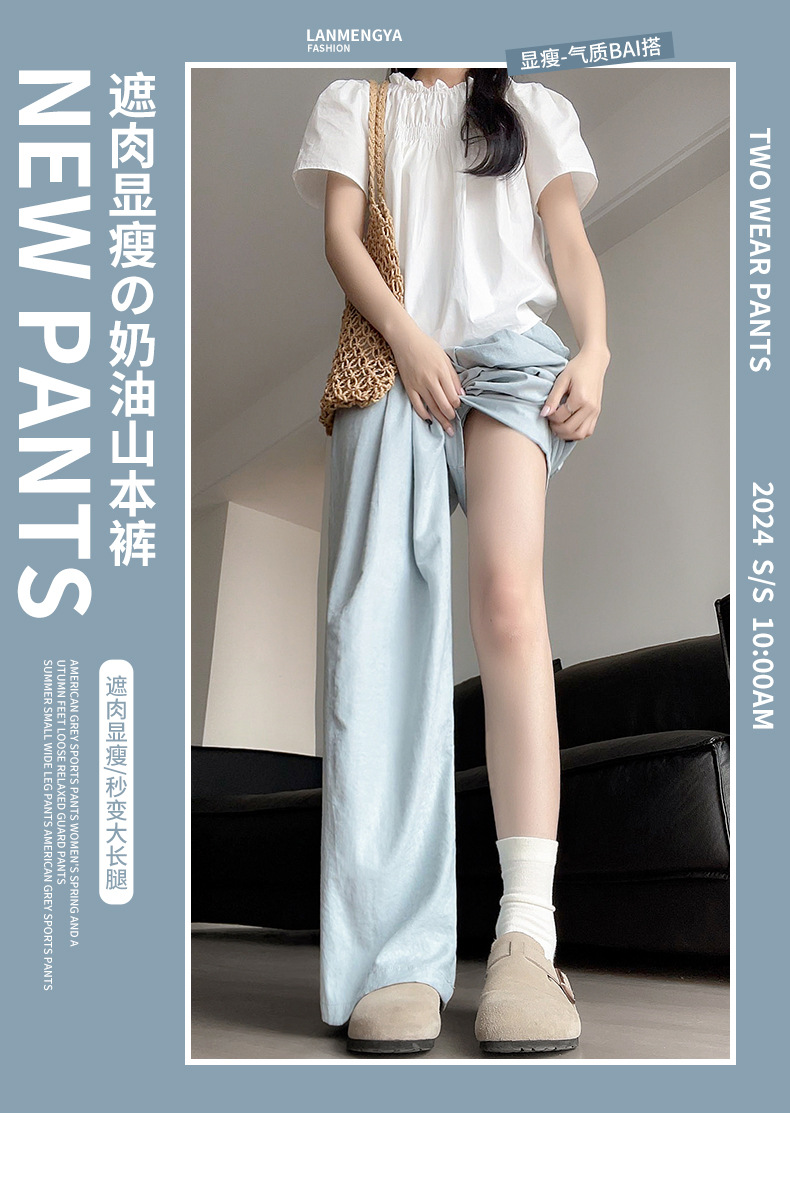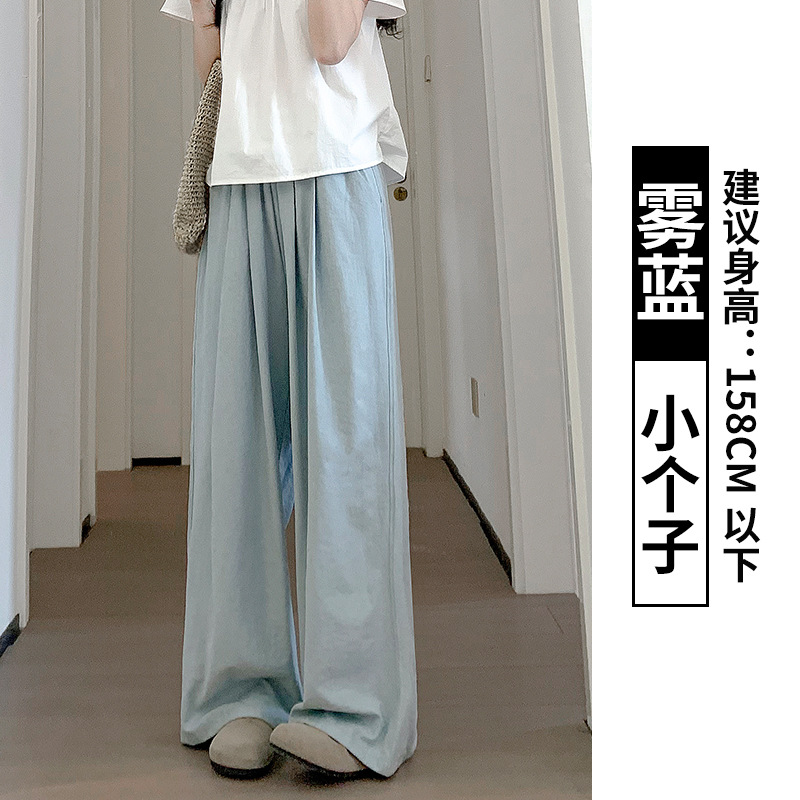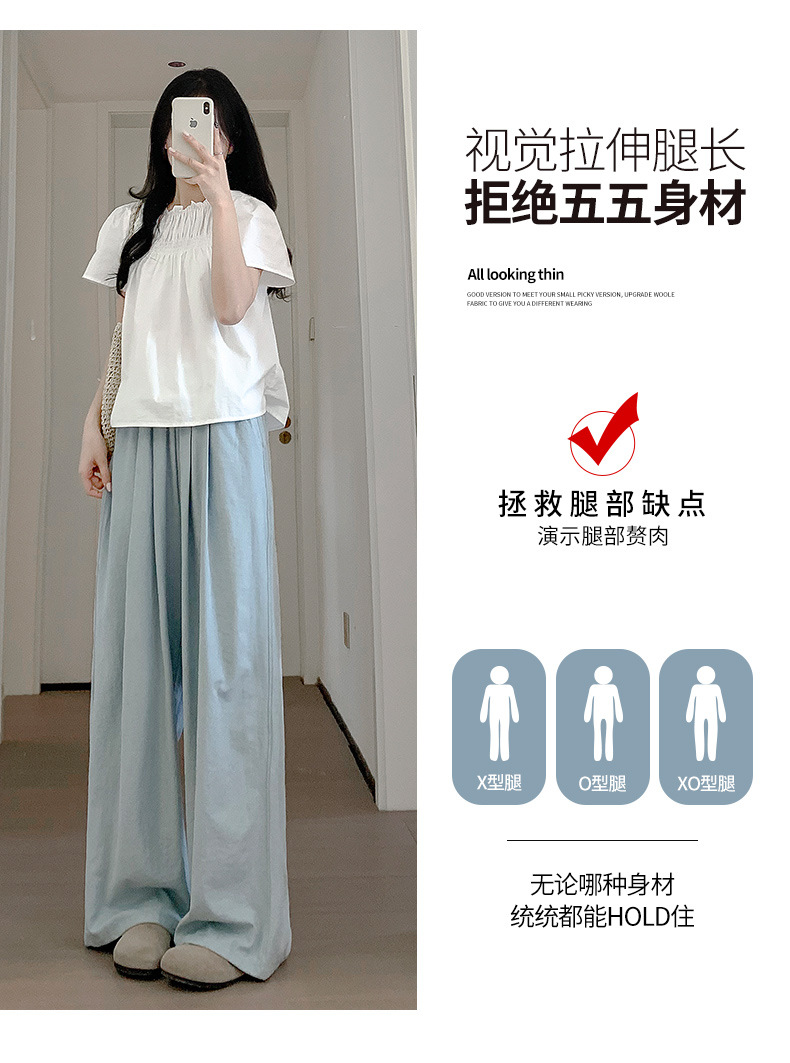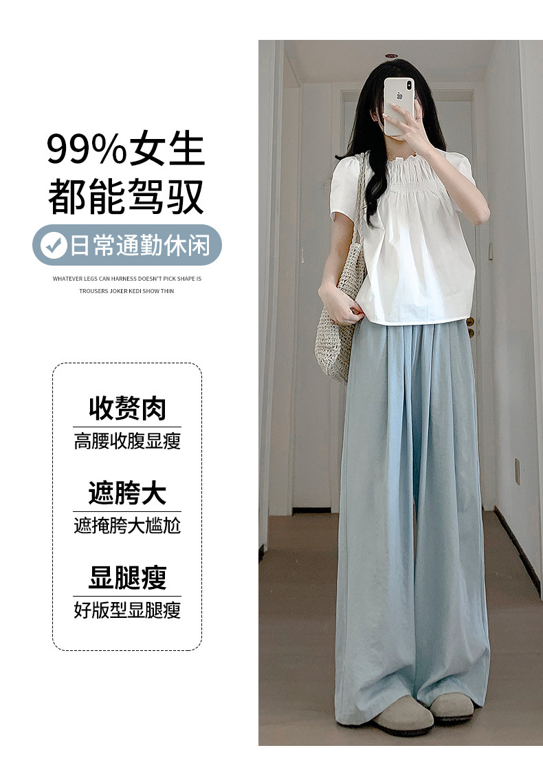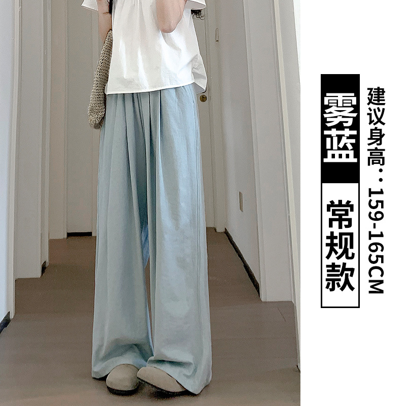 抖音质量蓝色山本裤女2025新款高腰直筒奶芙裤肌理感慵懒阔腿长裤