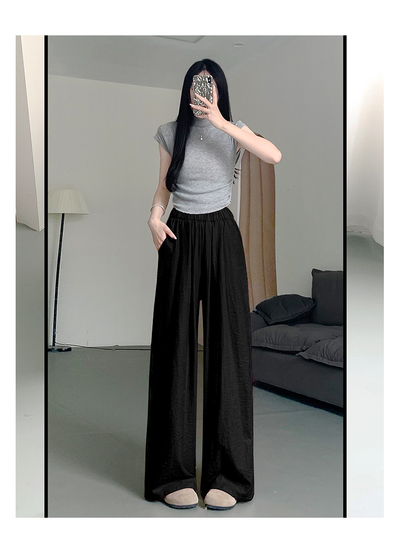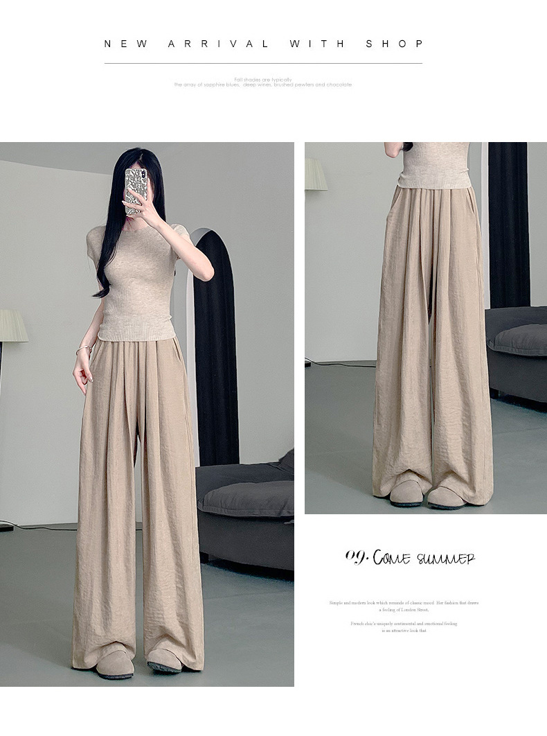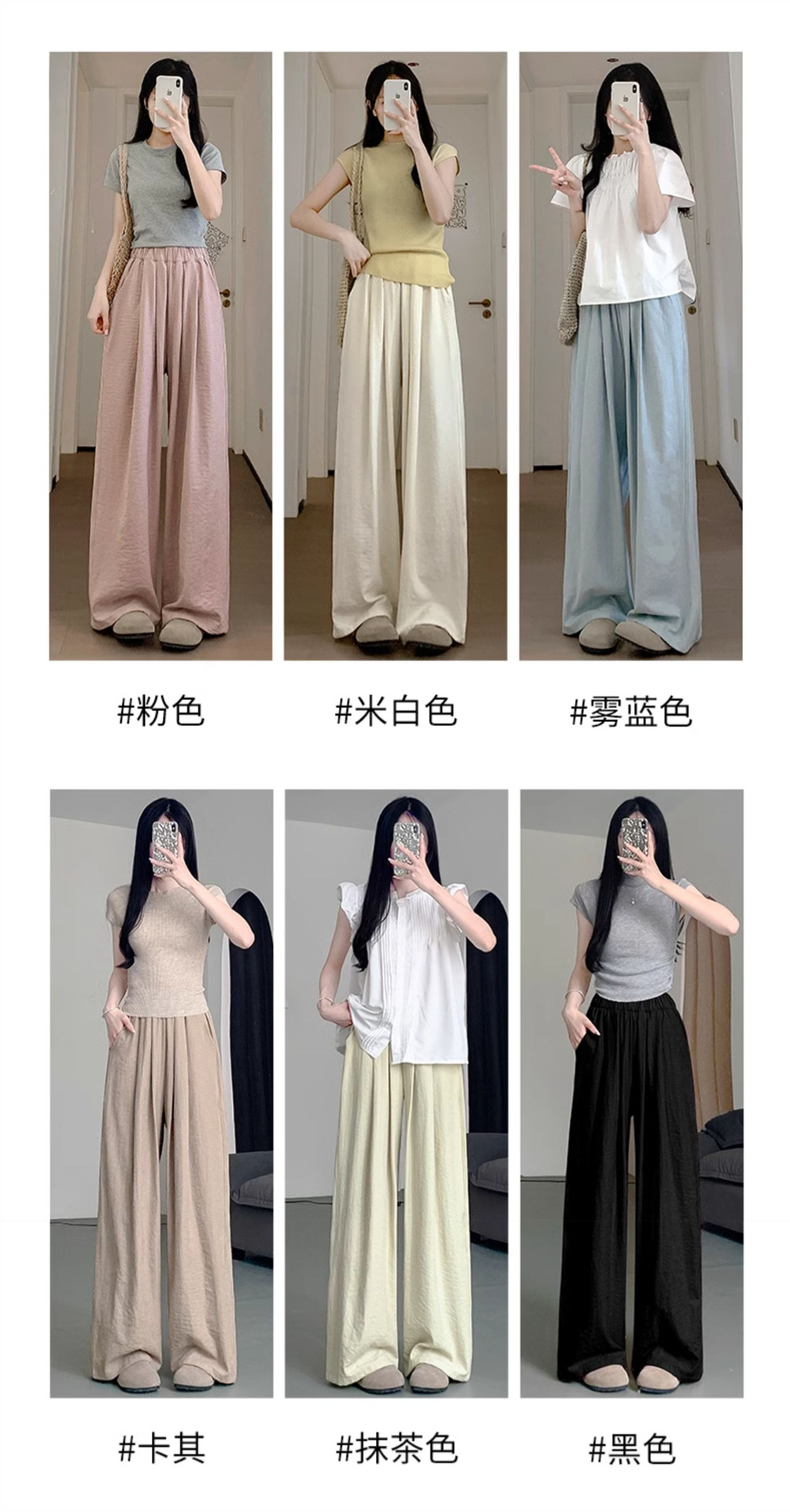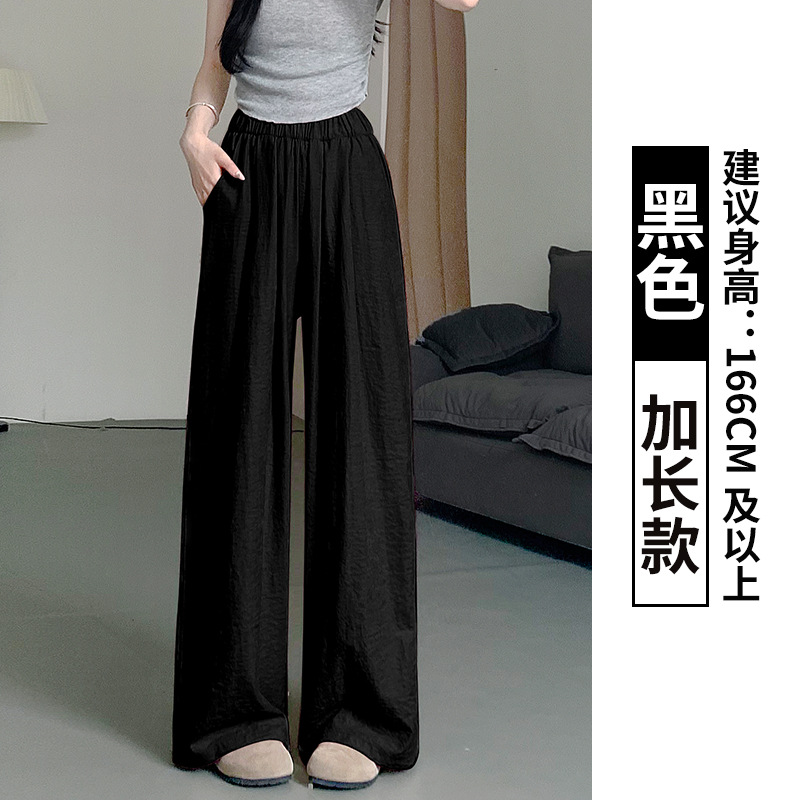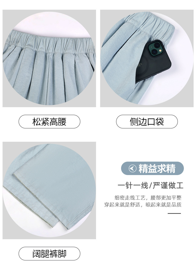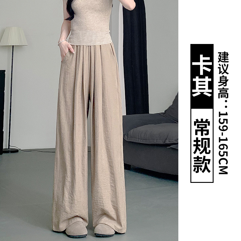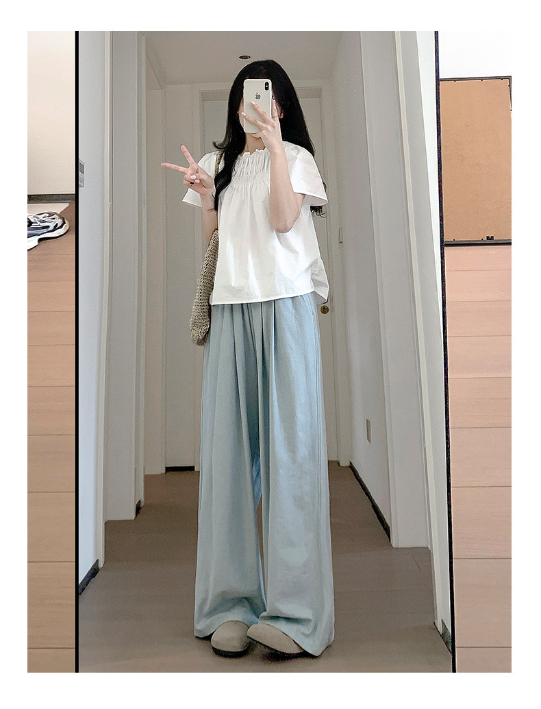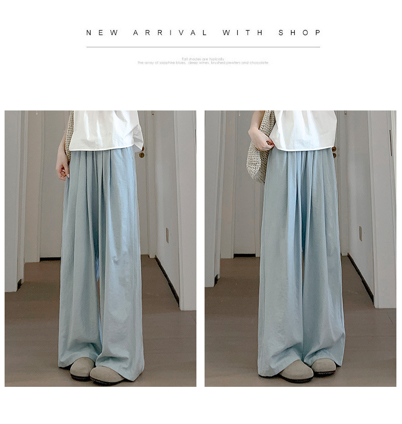 抖音质量蓝色山本裤女2025新款高腰直筒奶芙裤肌理感慵懒阔腿长裤