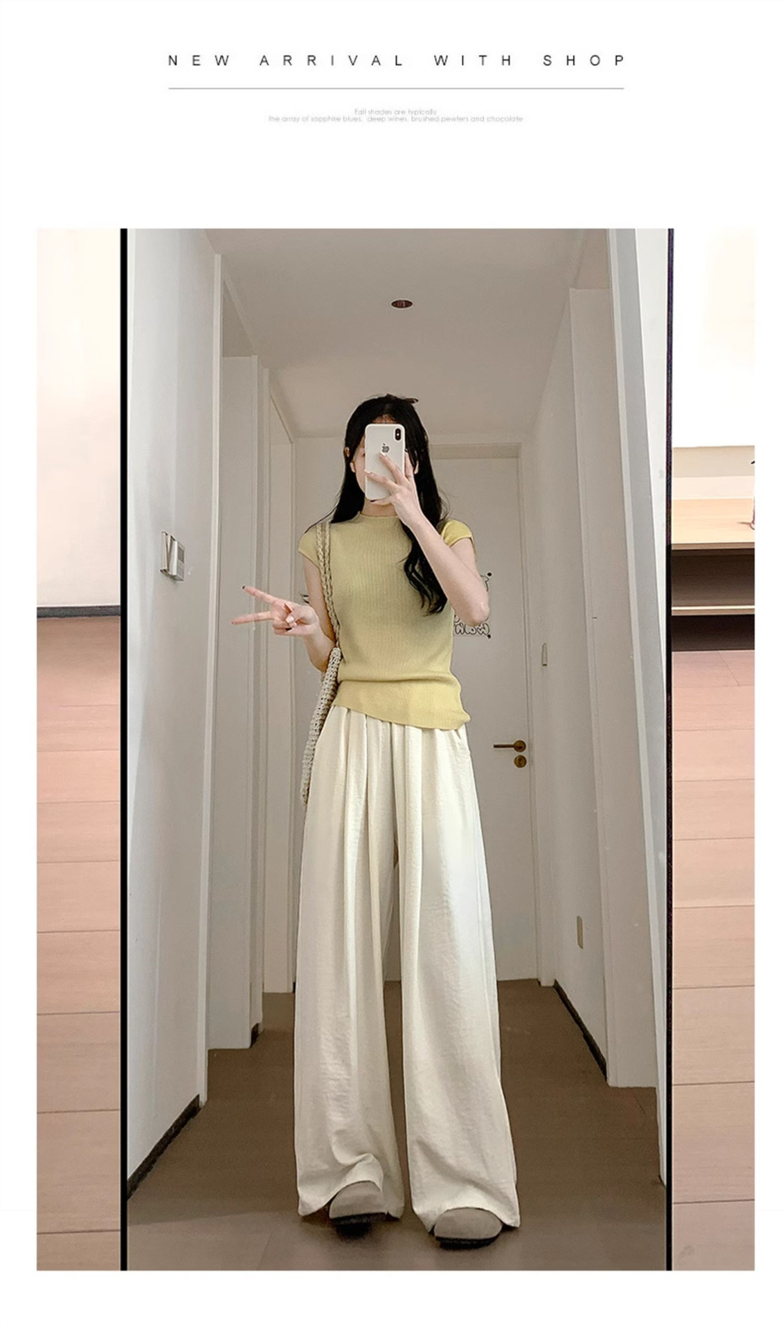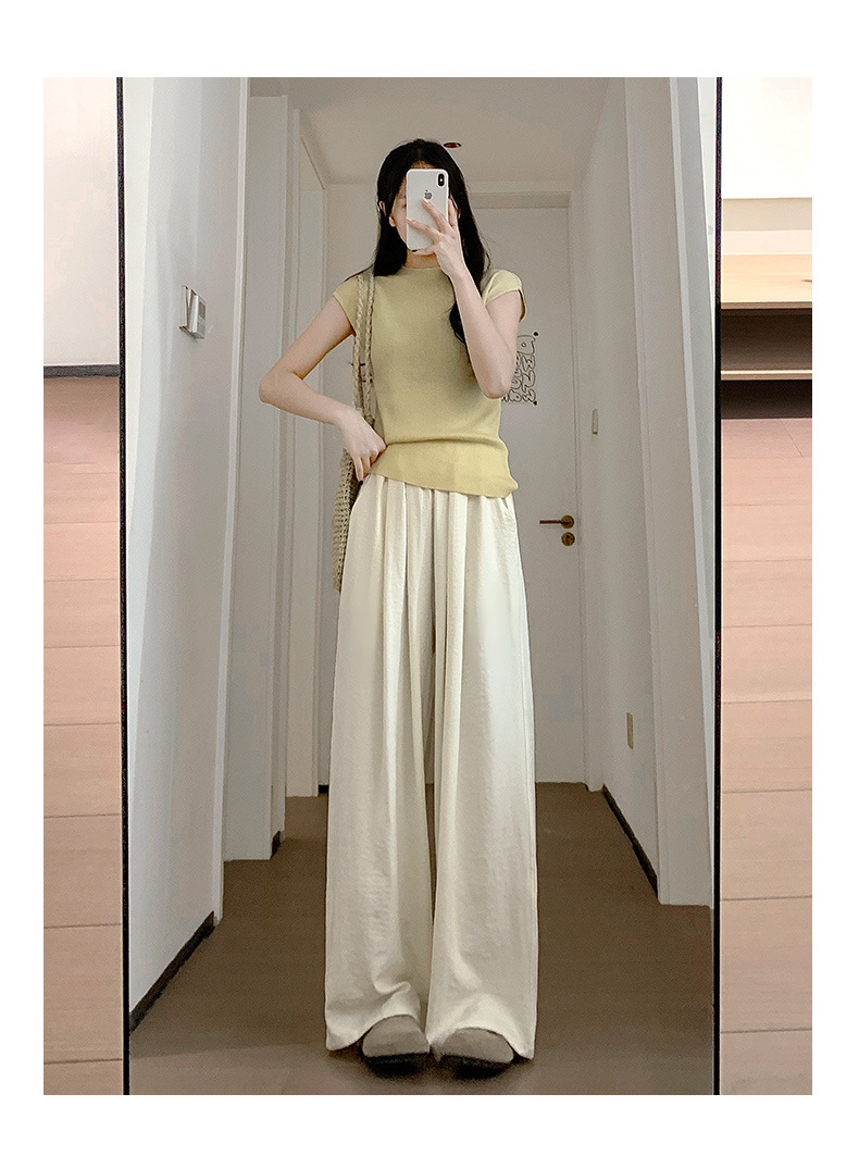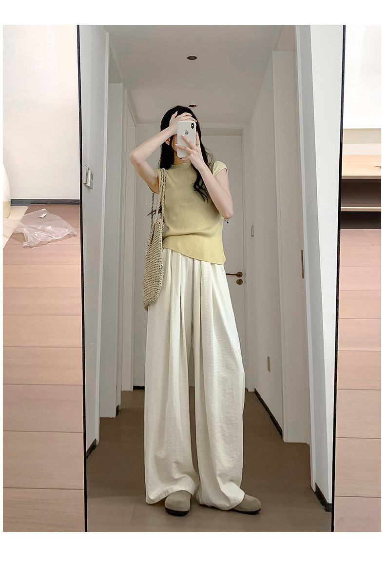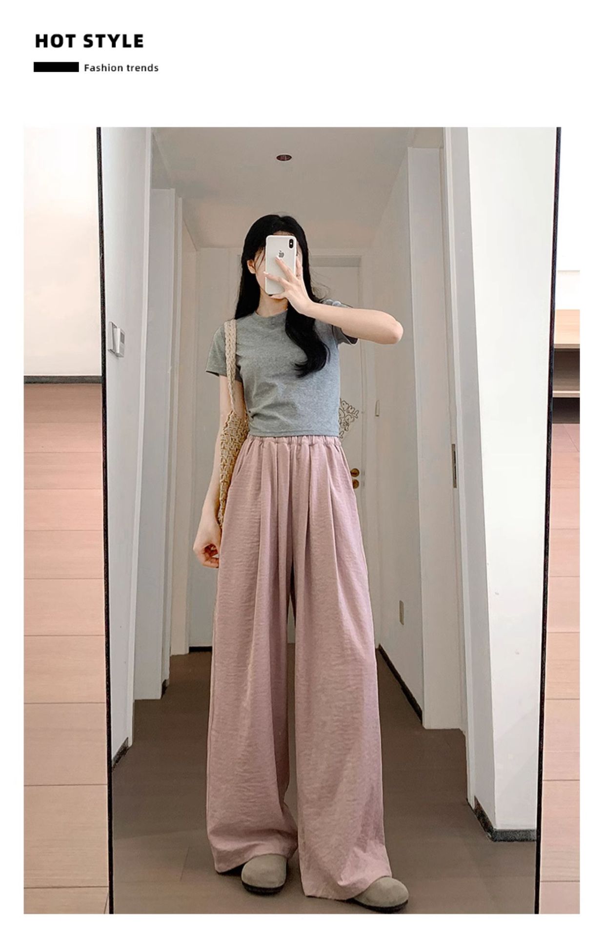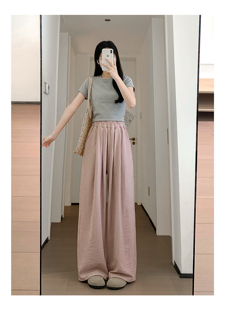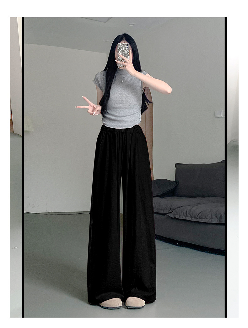 抖音质量蓝色山本裤女2025新款高腰直筒奶芙裤肌理感慵懒阔腿长裤