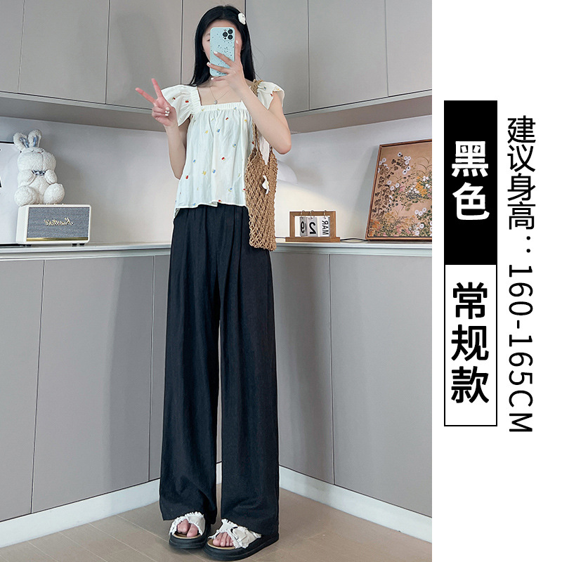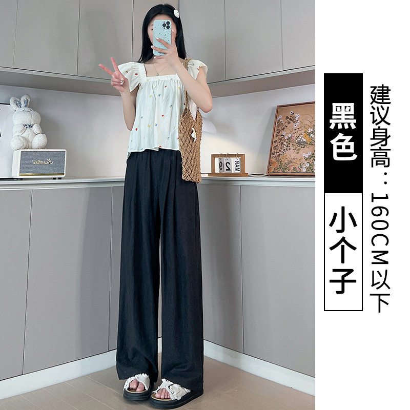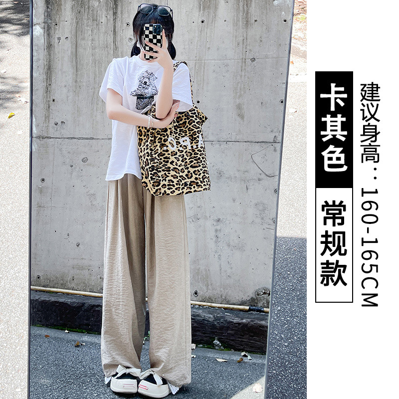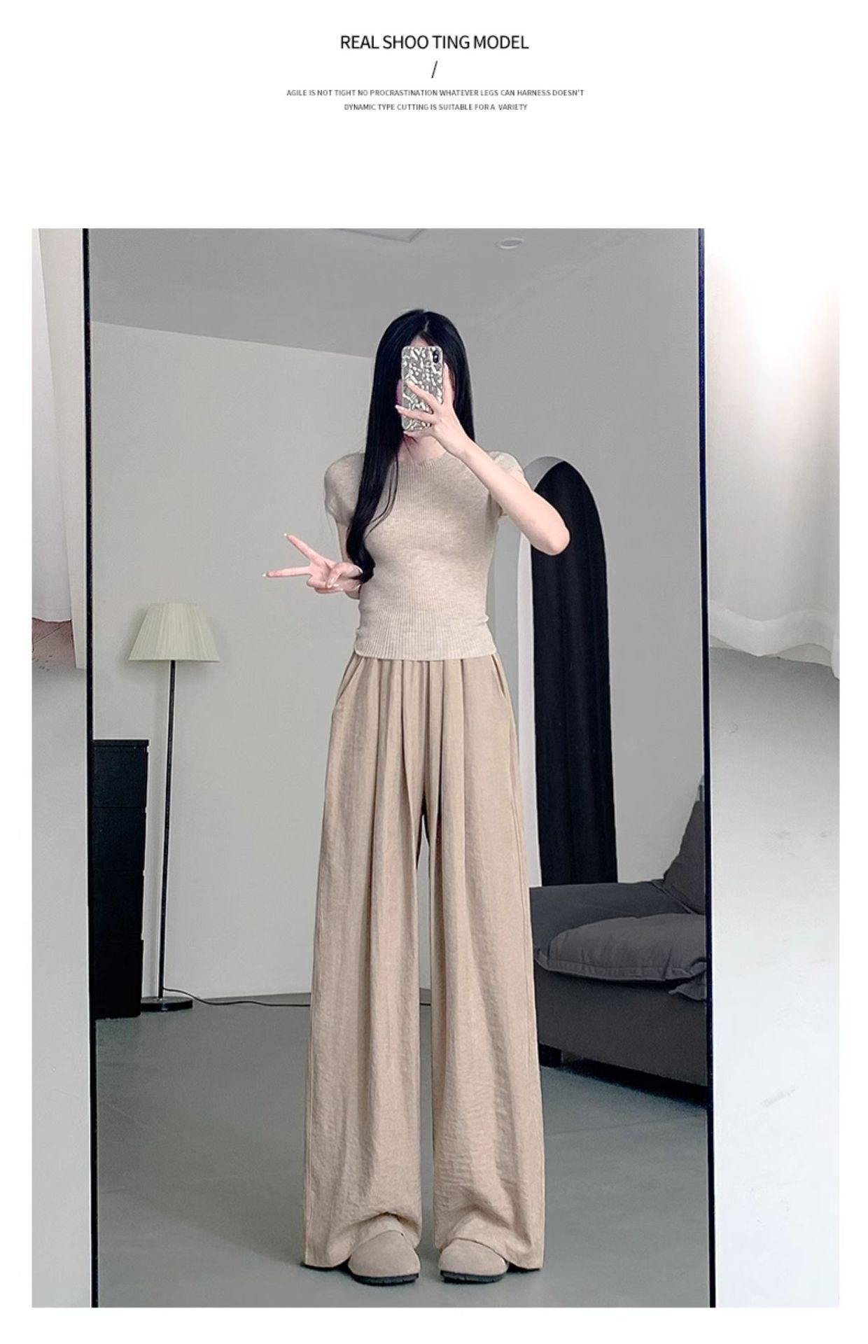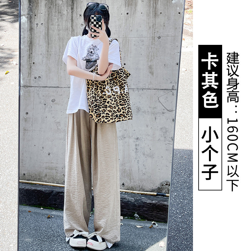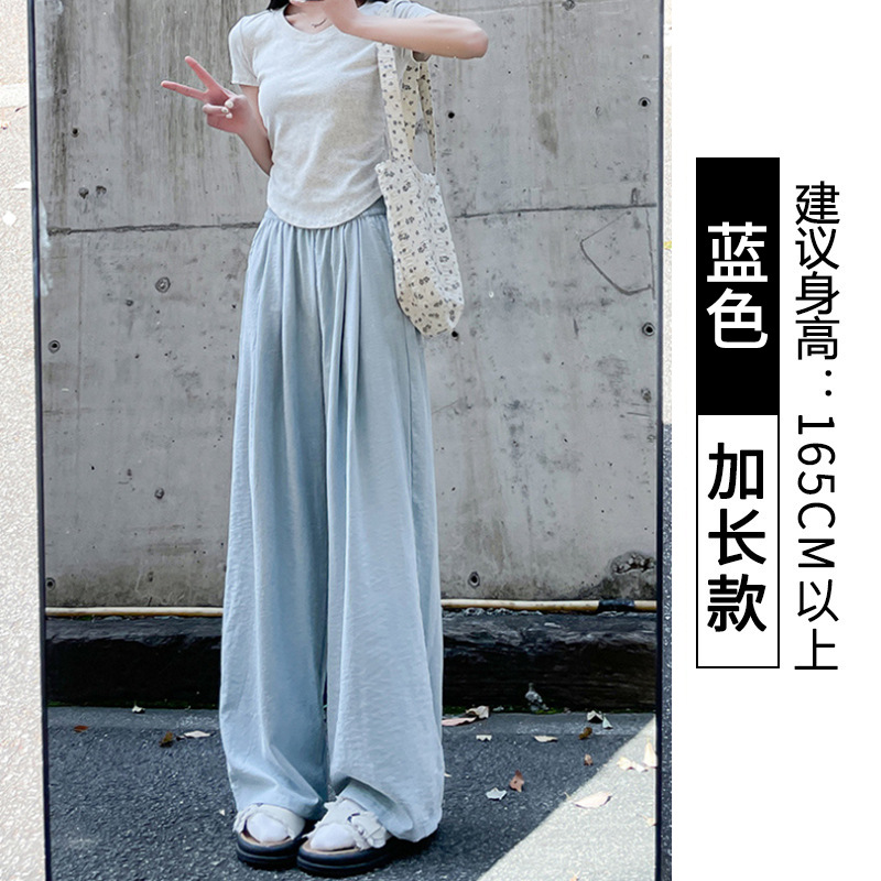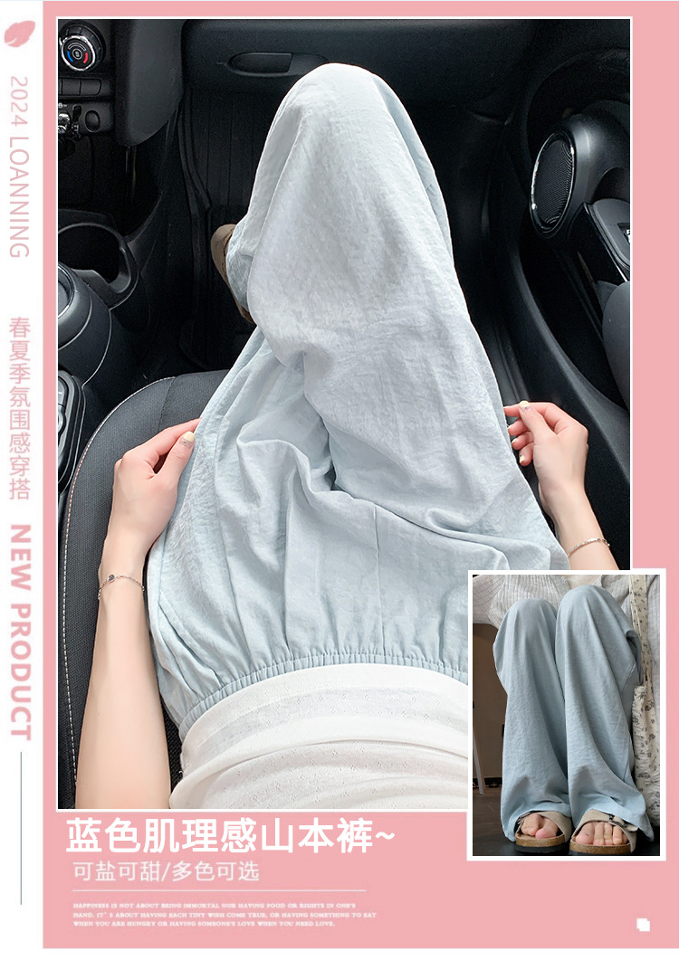 抖音质量冰丝奶芙山本裤女2025新款休闲小个子肌理感慵懒阔腿长裤