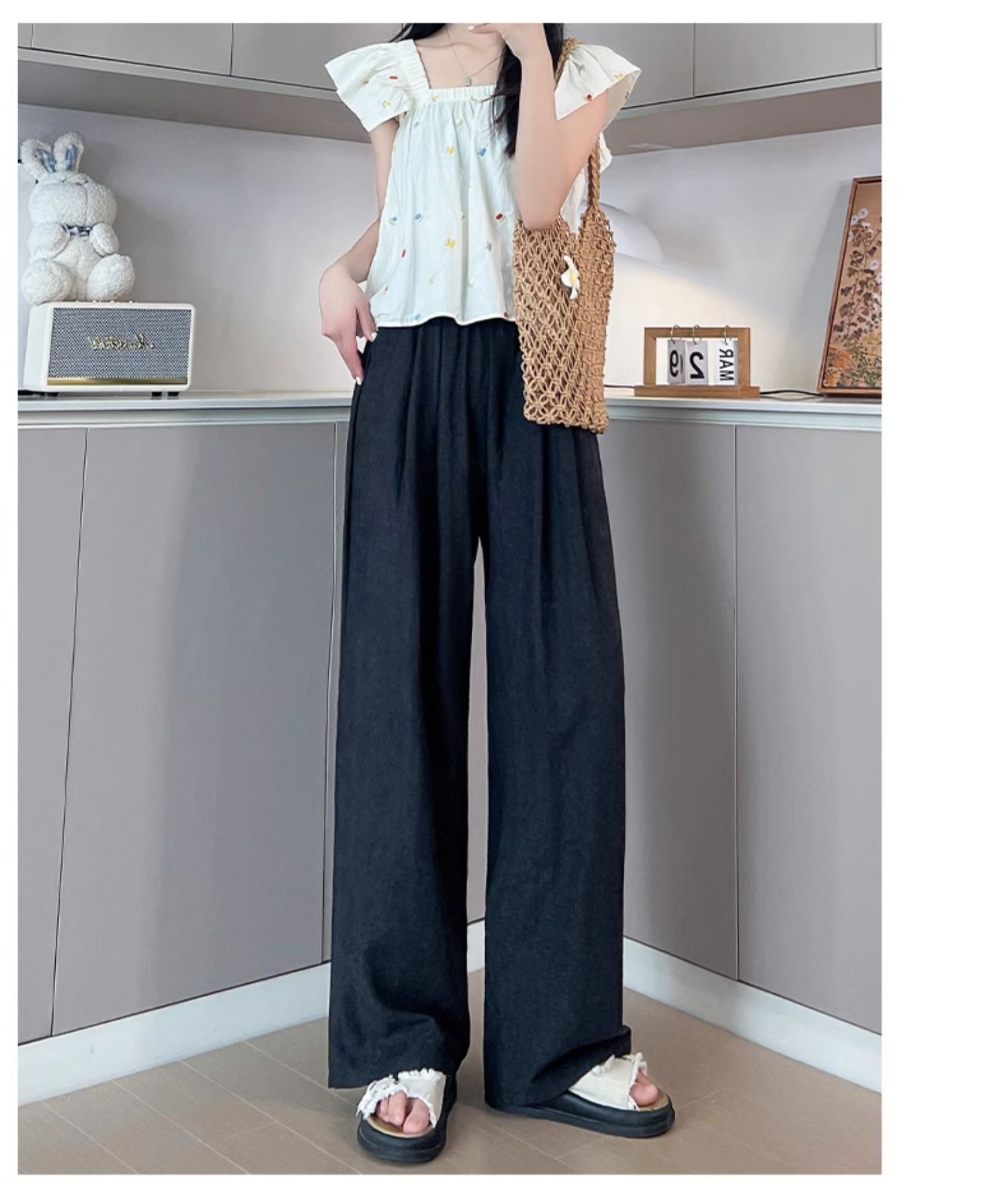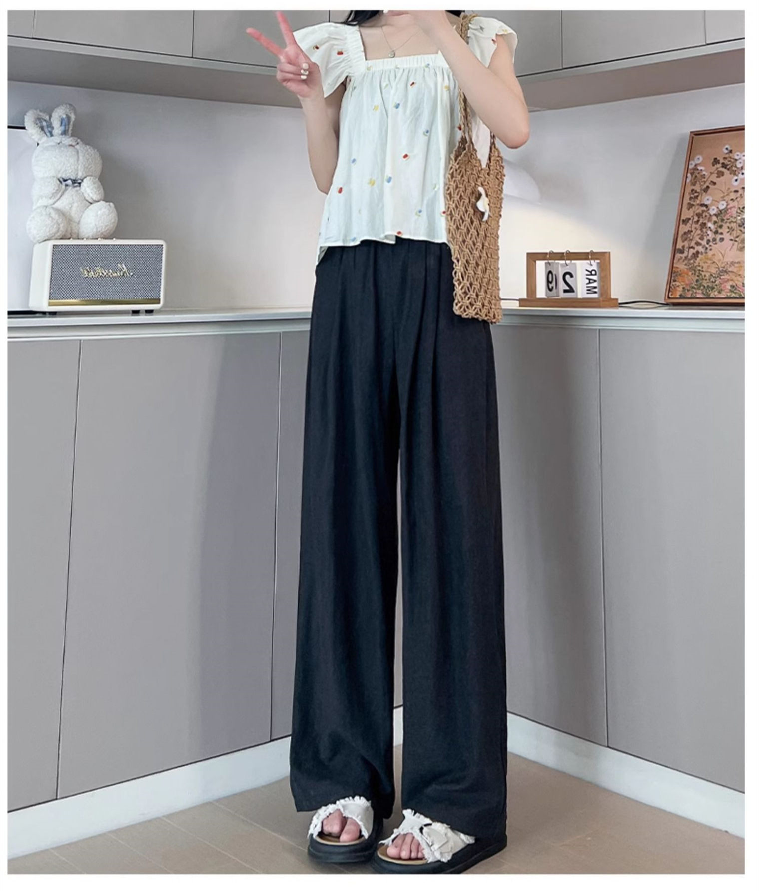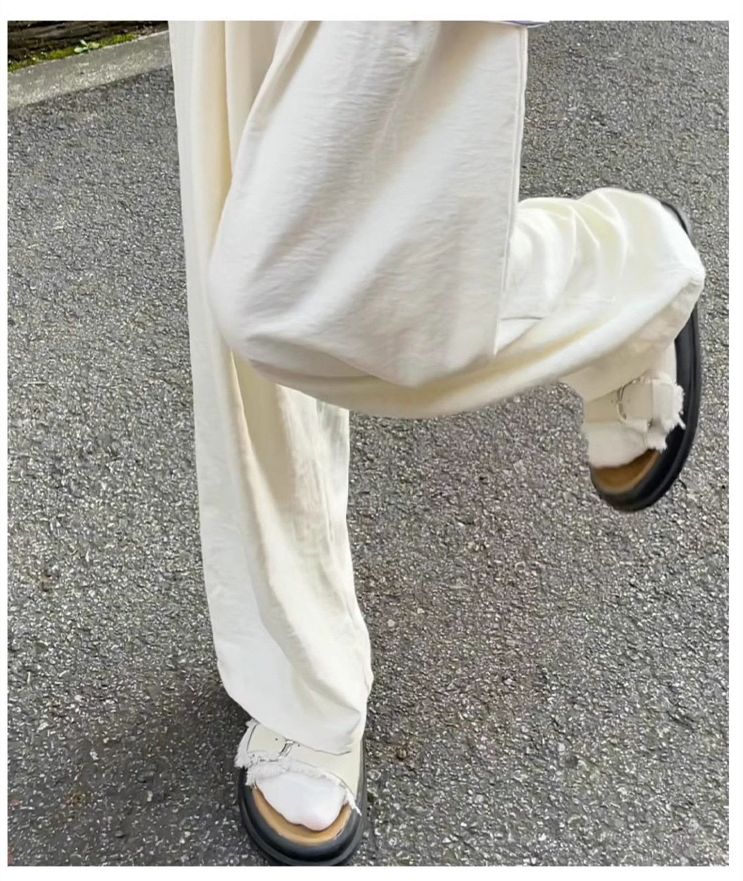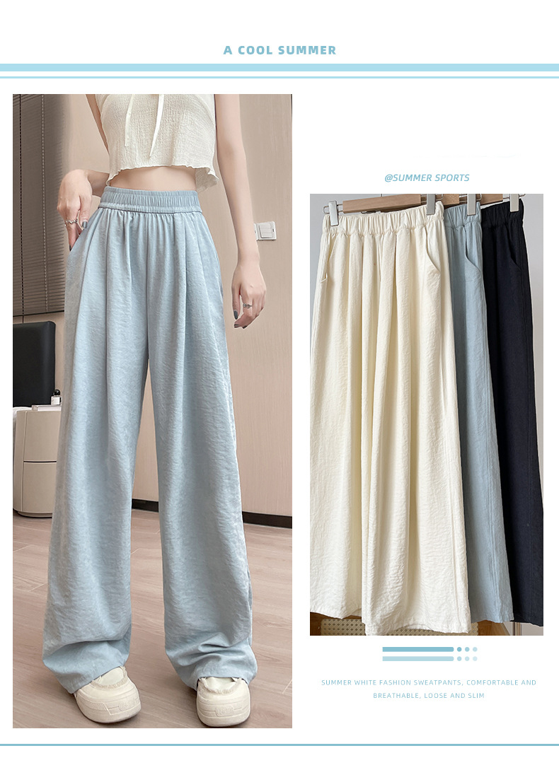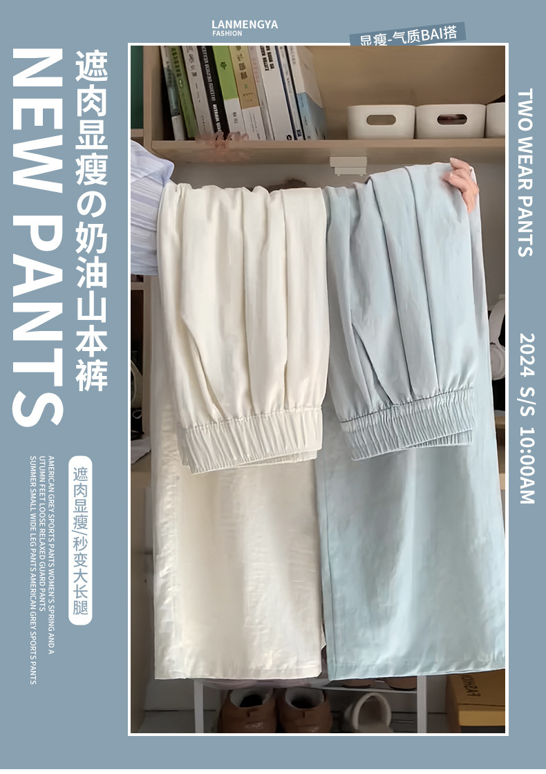 抖音质量冰丝奶芙山本裤女2025新款休闲小个子肌理感慵懒阔腿长裤