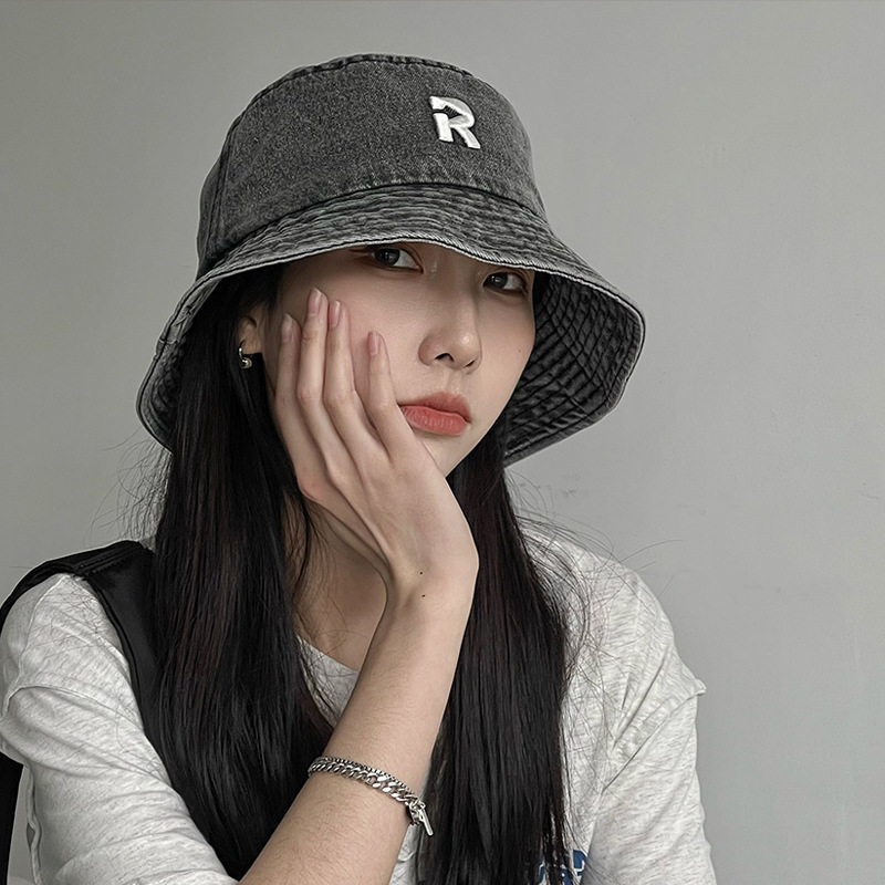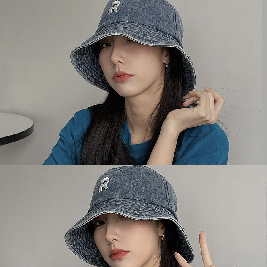 新款字母标牛仔渔夫帽子女夏季遮阳显脸小休闲百搭网红盆帽潮