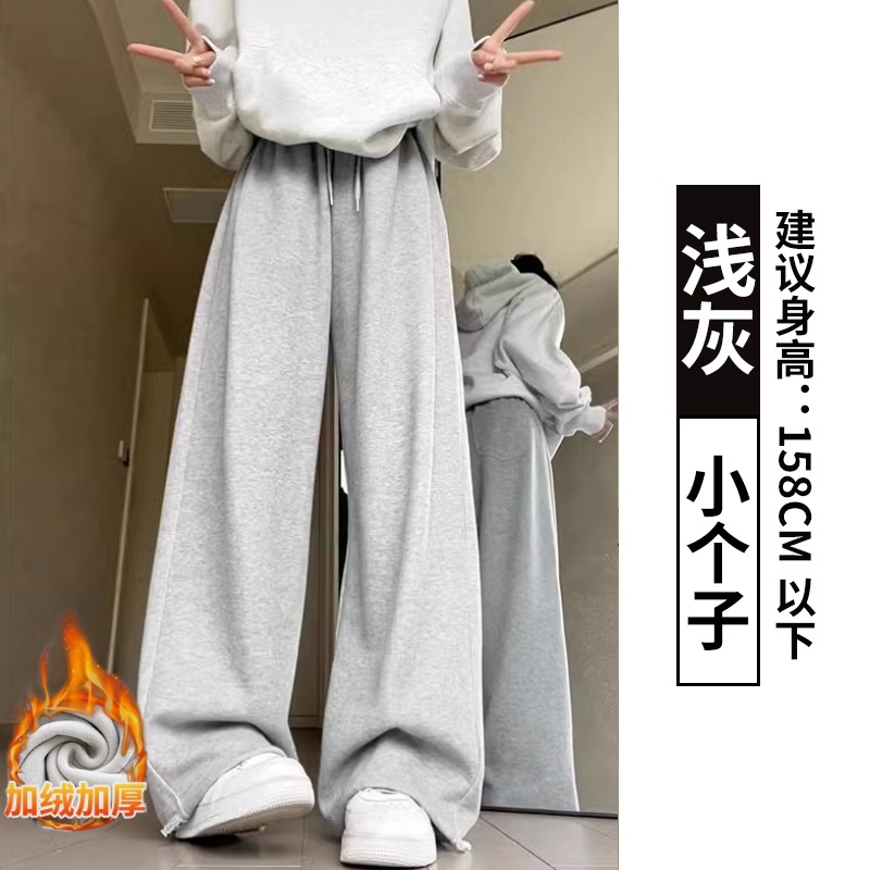 抖音质量曼巴棉休闲运动裤女秋冬加绒宽松阔腿裤美式休闲卫裤