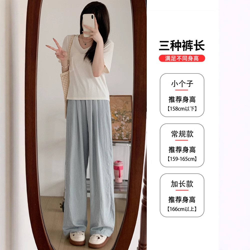 抖音质量奶芙蓝色冰丝山本裤女夏季2025新款宽松休闲直筒阔腿长裤