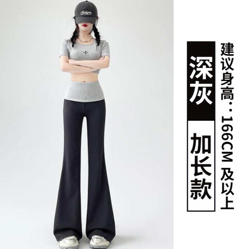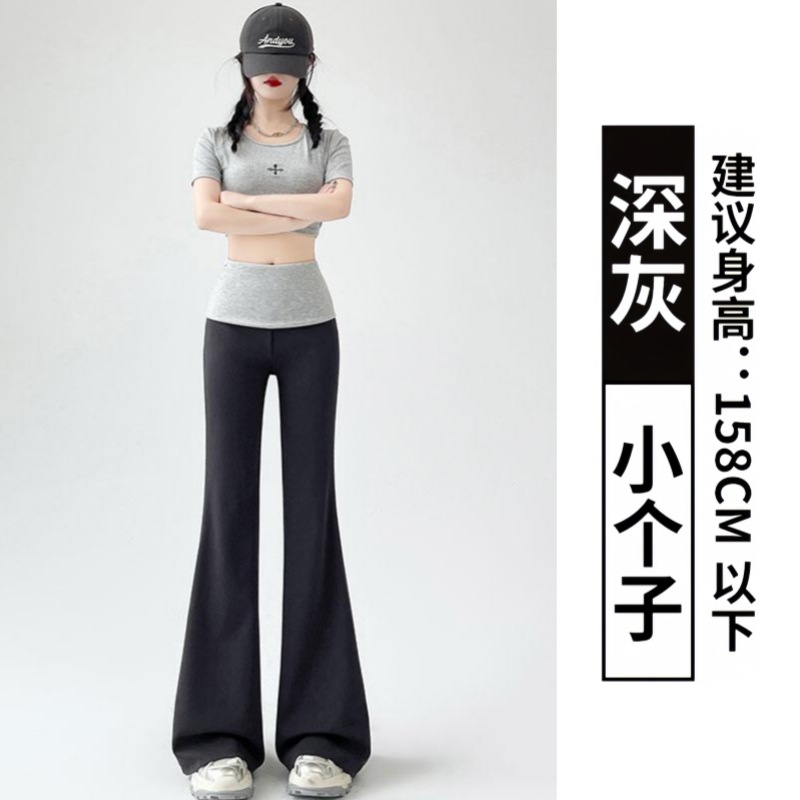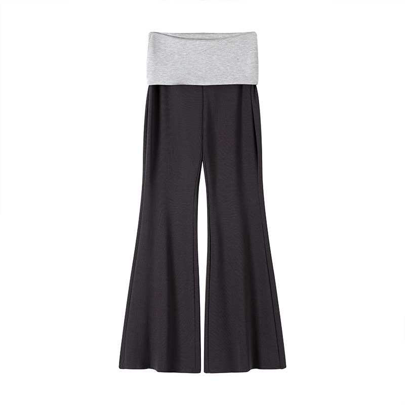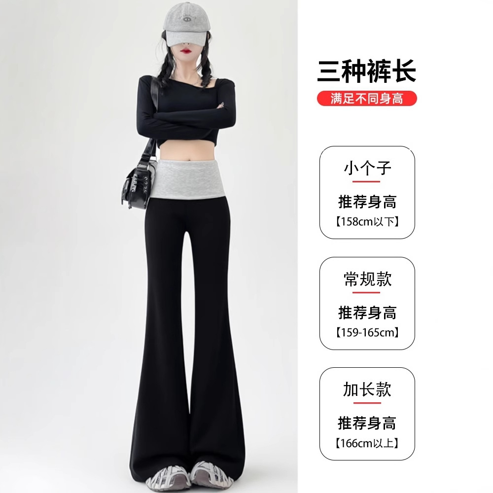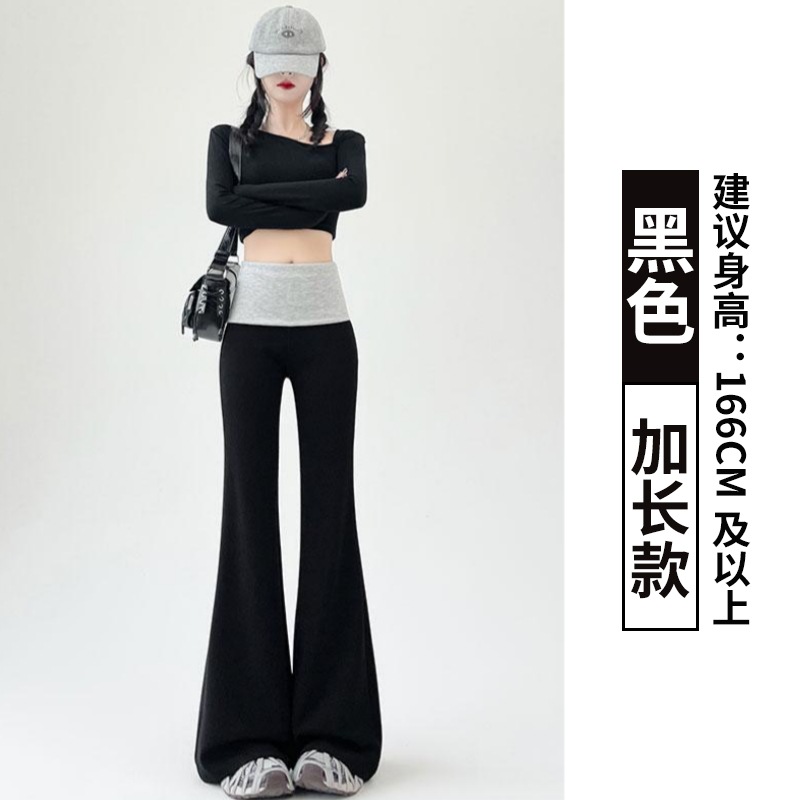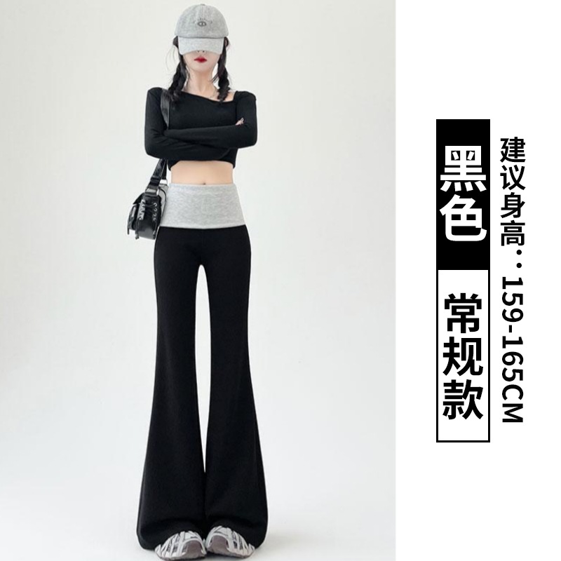抖音质量撞色拼接微喇卫裤女2025新款高腰修身显瘦垂感运动阔腿裤