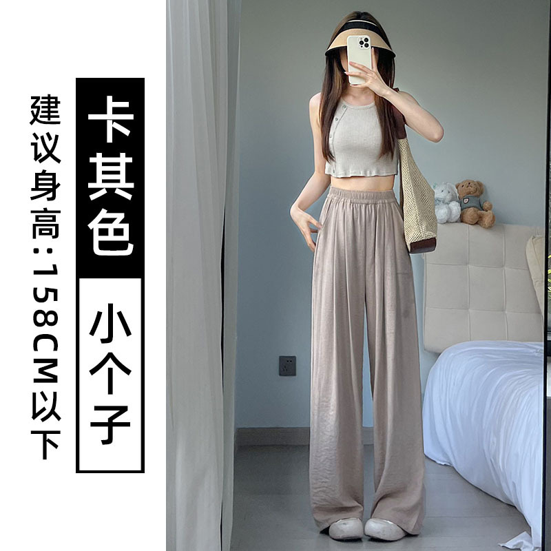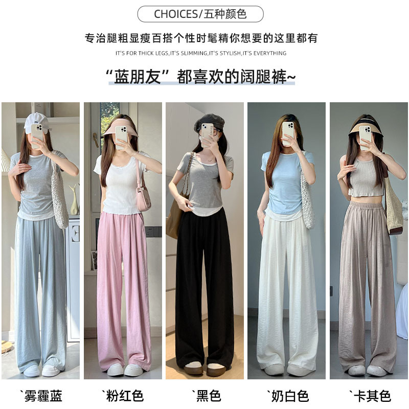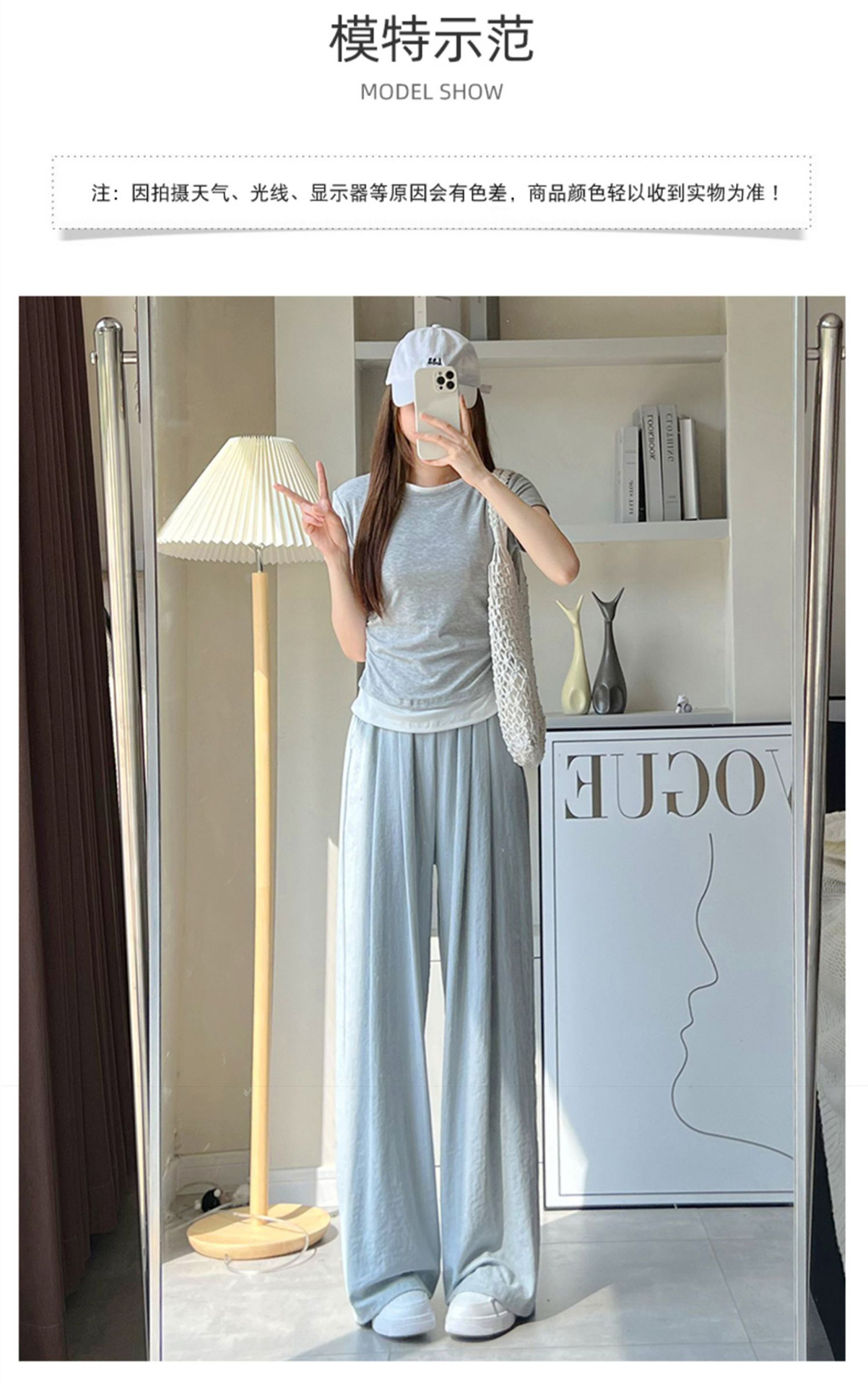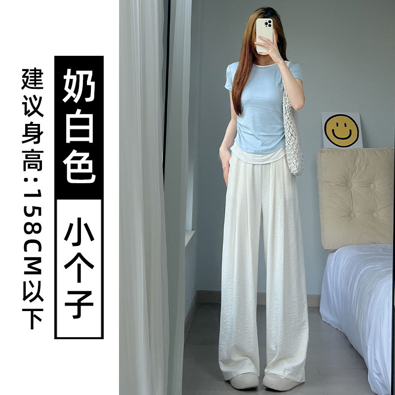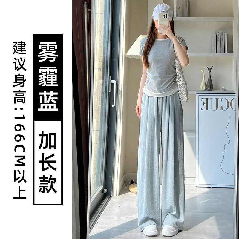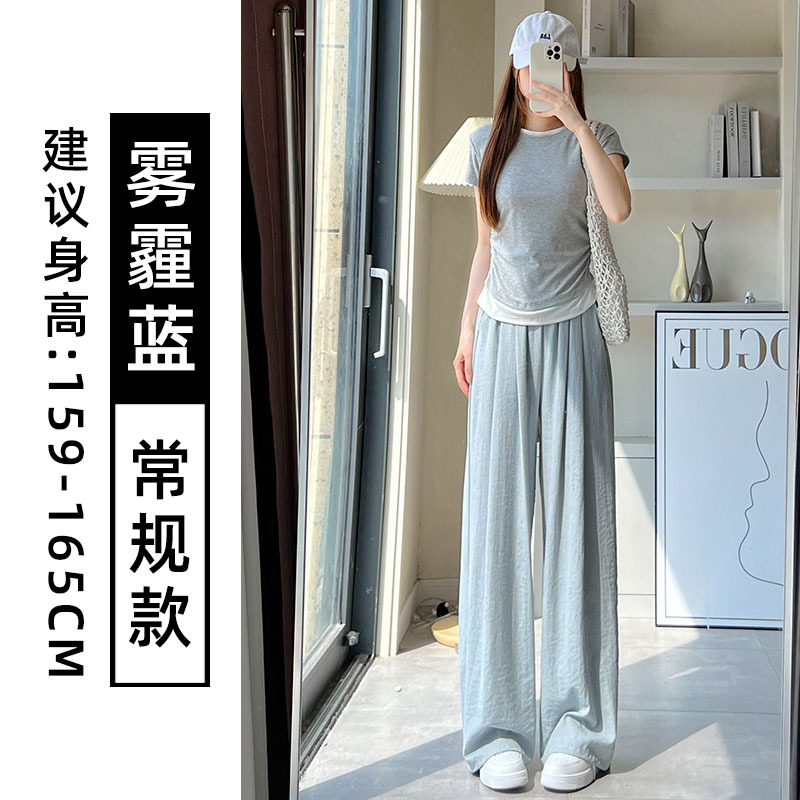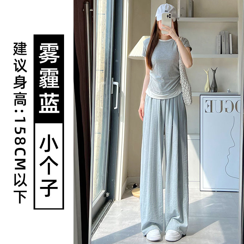 抖音质量蓝色山本裤女2025新款小个子高腰冰丝奶芙裤肌理感阔腿裤