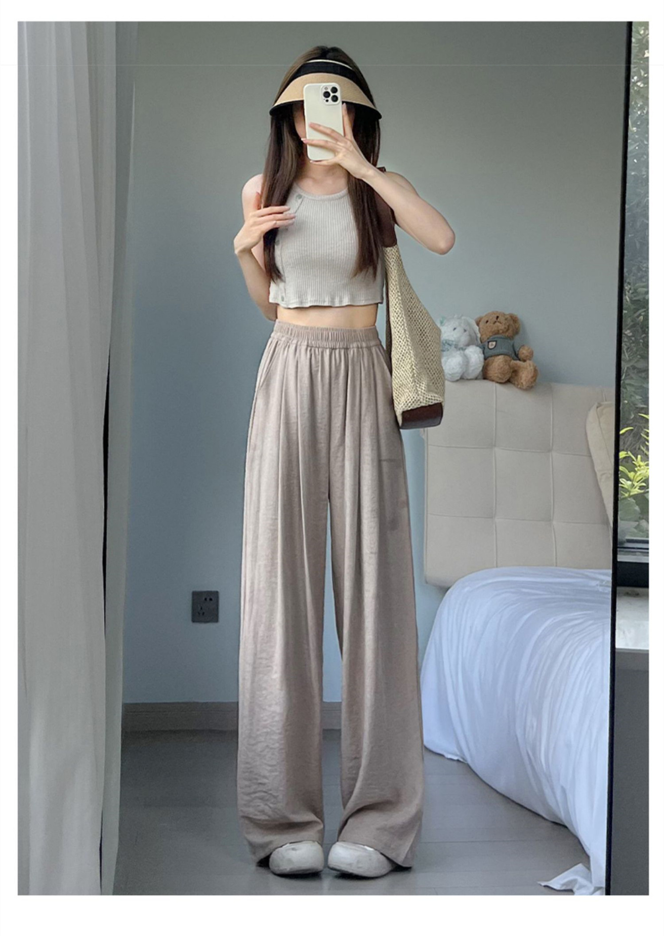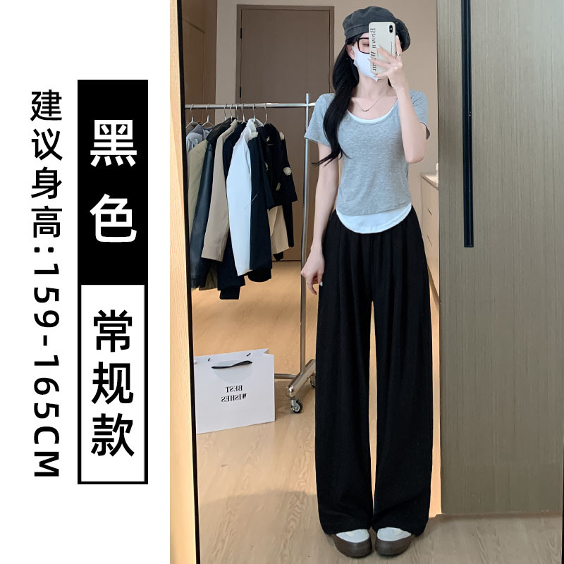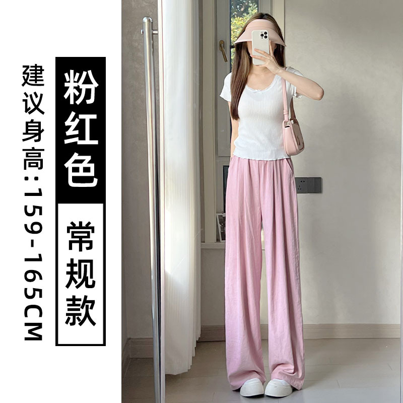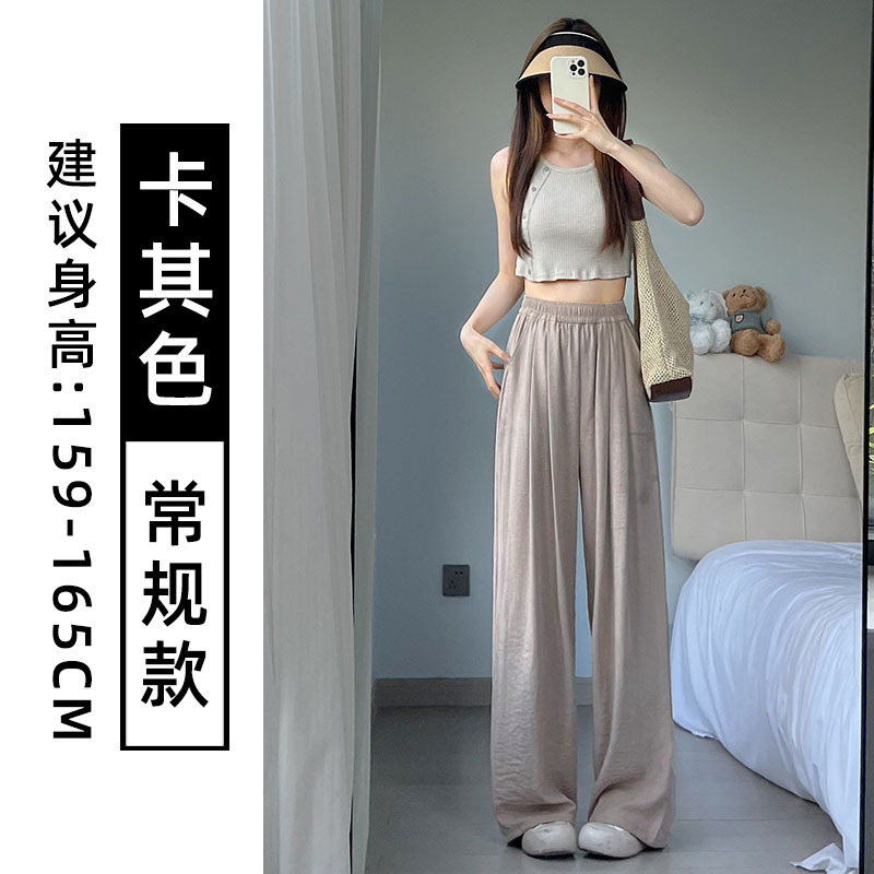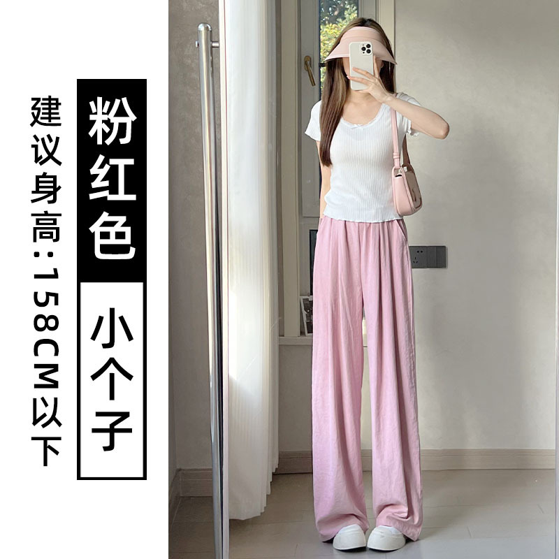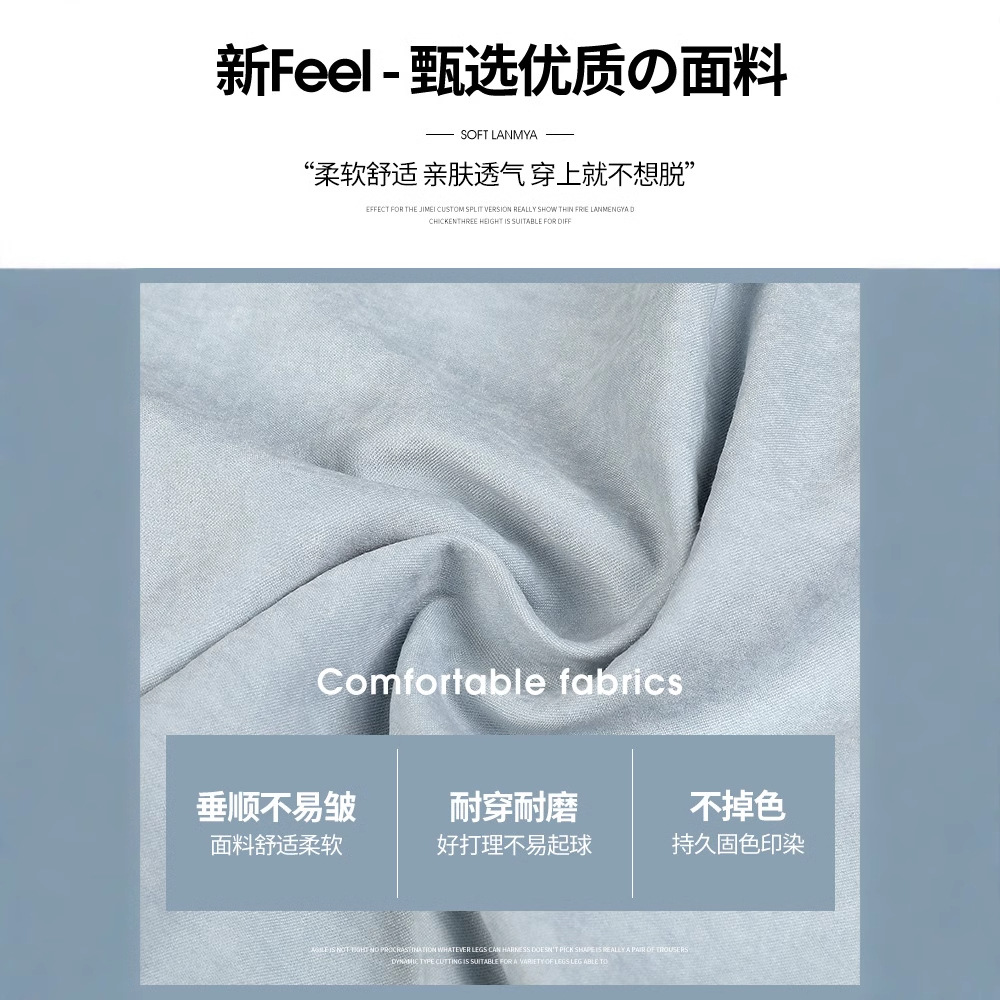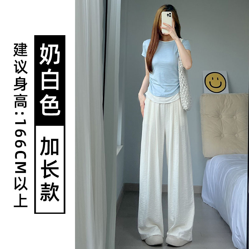 抖音质量蓝色山本裤女2025新款小个子高腰冰丝奶芙裤肌理感阔腿裤
