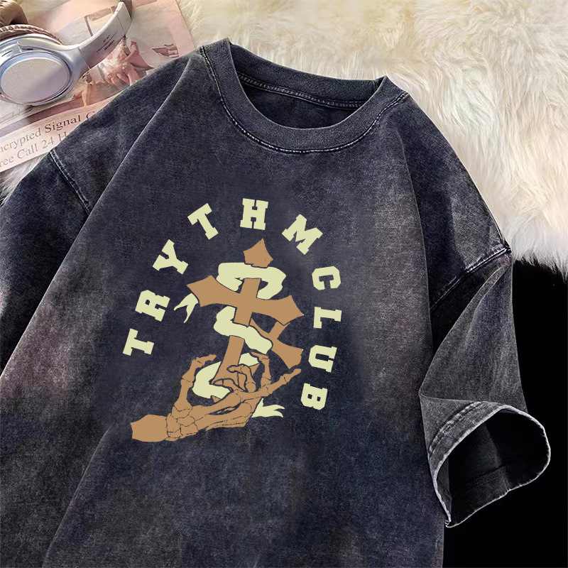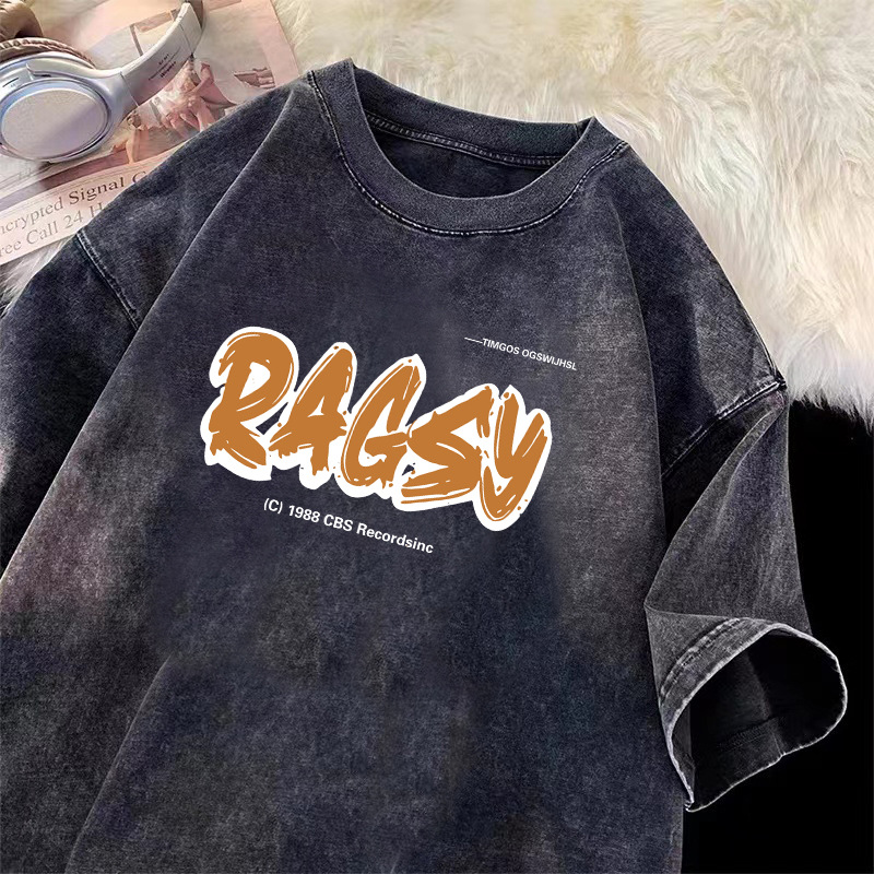 夏季新款纯棉短袖t恤男士ins港风重磅纯棉休闲上衣服水洗做旧体恤