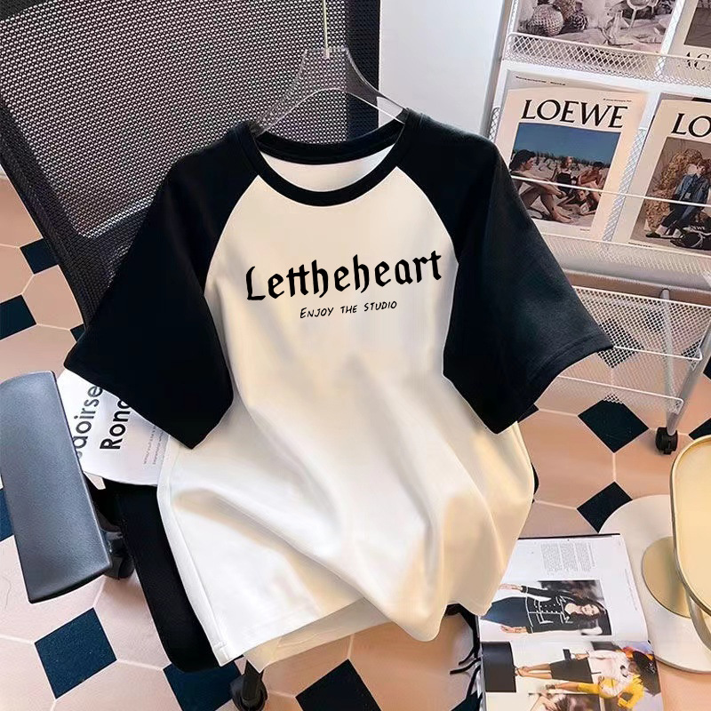 重磅纯棉短袖T恤情侣夏季新款休闲百搭插肩袖上衣服宽松体恤