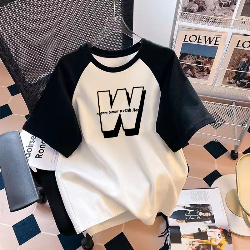 简约字母短袖T恤男女夏季新款韩版圆领休闲宽松学生半袖潮DT320