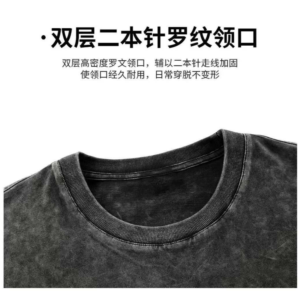 批量来图定款~洗旧短袖230克纯棉水洗做旧光版纯色短袖t恤空白版