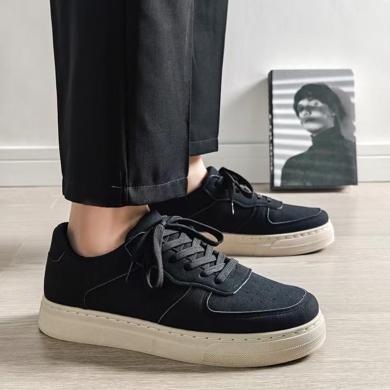 高颜值帅气2025新款小黑鞋休闲厚底百搭运动学生黑色板鞋美式复古