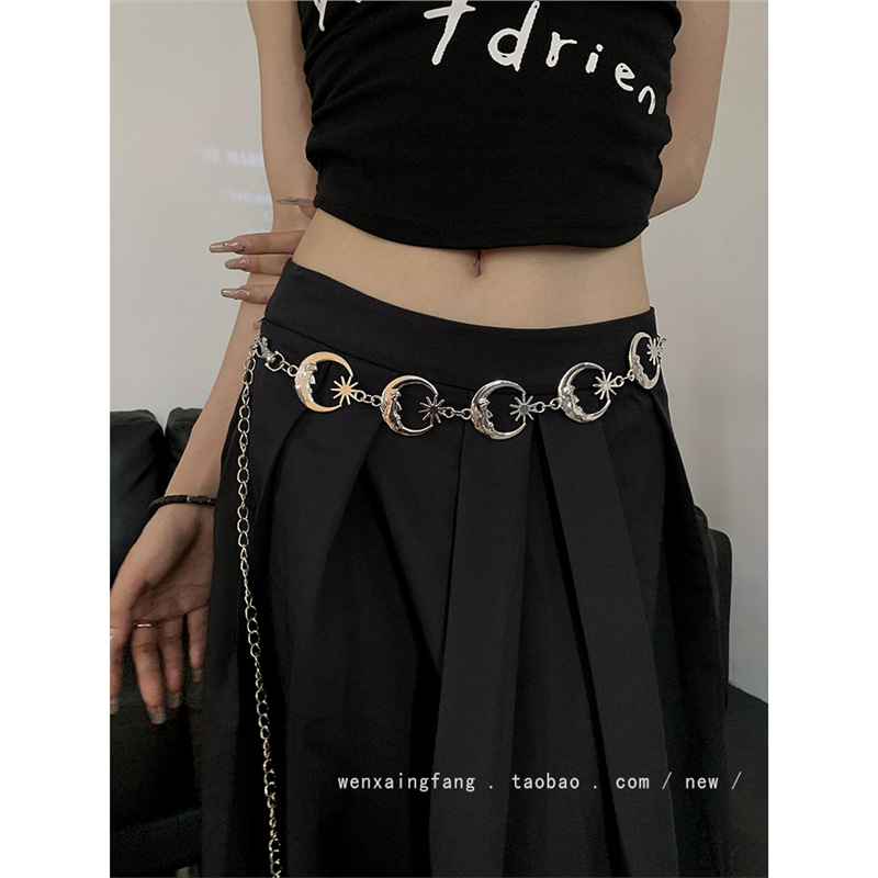 新款复古金属月牙太阳花腰链女装饰配裙子气质百搭时尚辣妹腰带潮