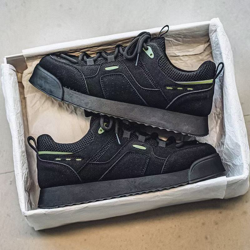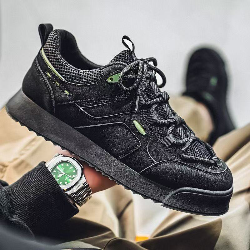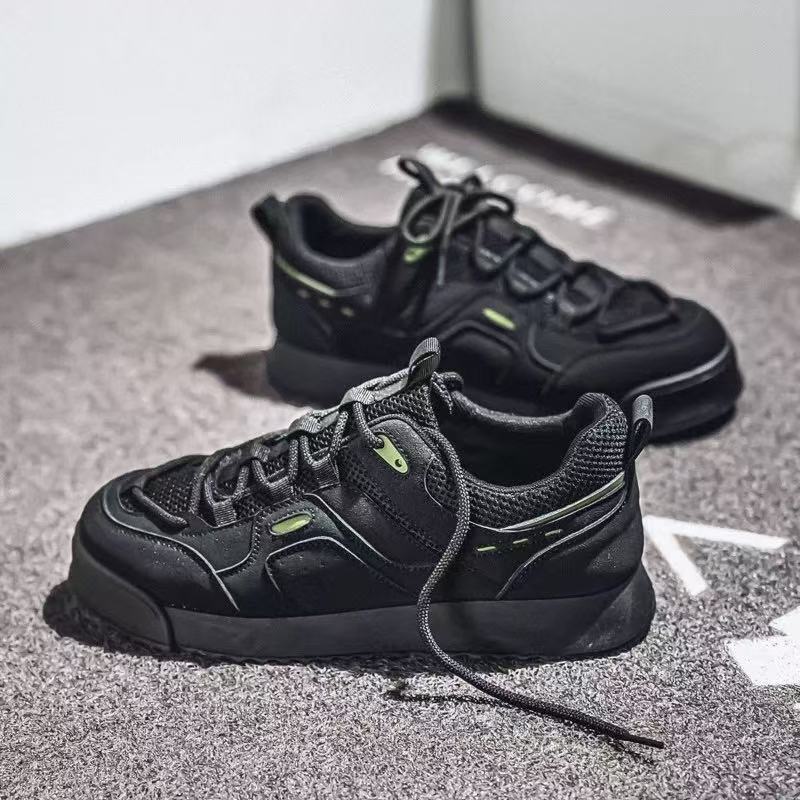 黑色帅气透气网面2025新款小黑鞋休闲厚底百搭运动板鞋学生阿甘鞋