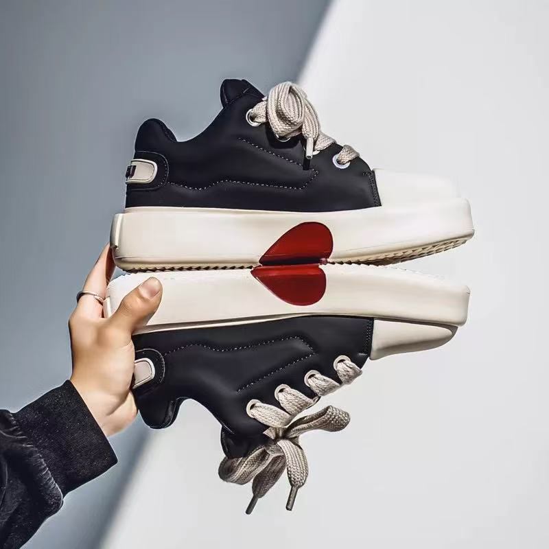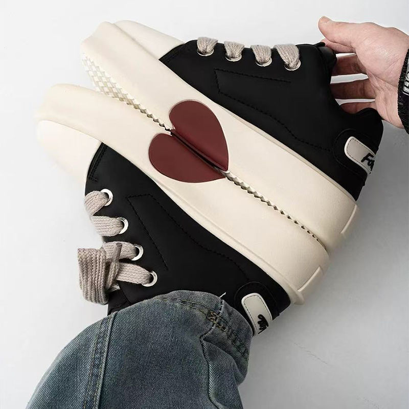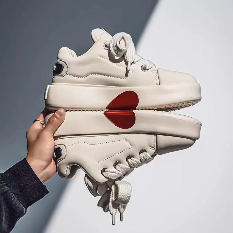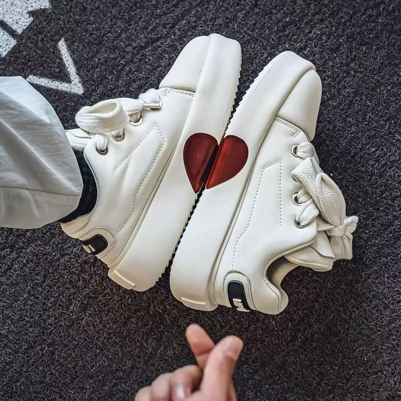 2025男鞋春季厚底增高面包板鞋时尚小众百搭运动休闲爱心小白鞋子