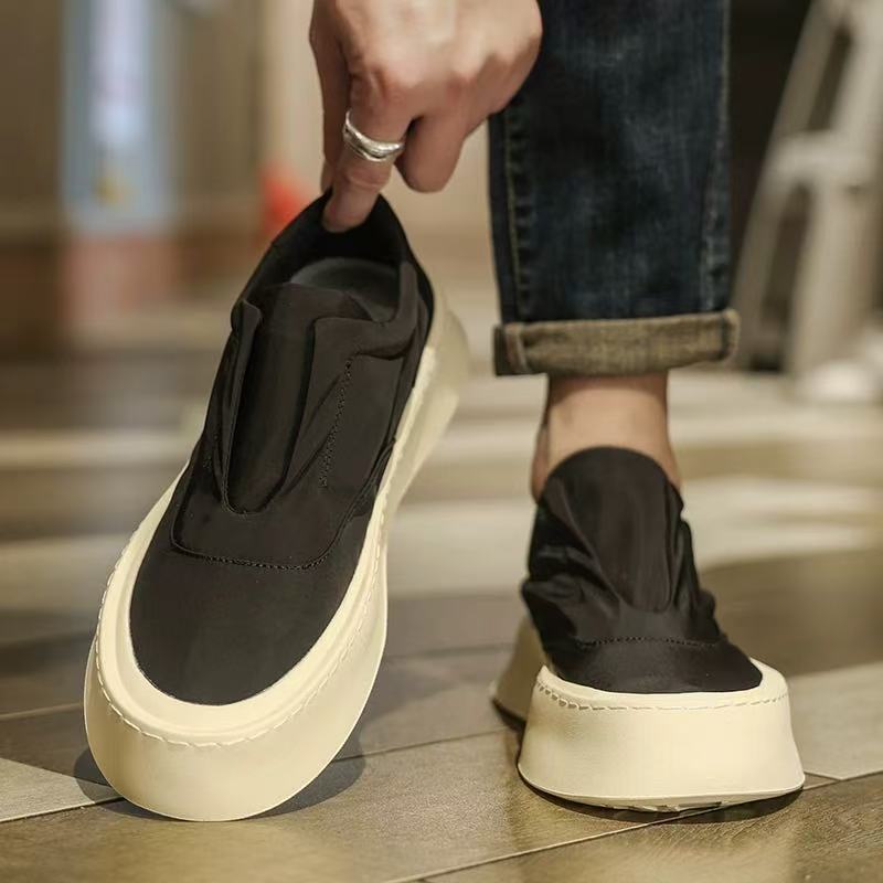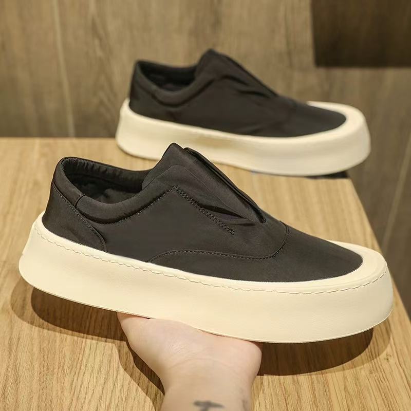 夏季一脚蹬男鞋2025新款透气百搭帆布鞋男士增高素潮休闲鞋子板鞋