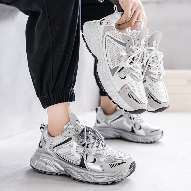 软底新款透气网面男鞋春秋款老爹鞋厚底学生运动休闲时尚百搭潮鞋