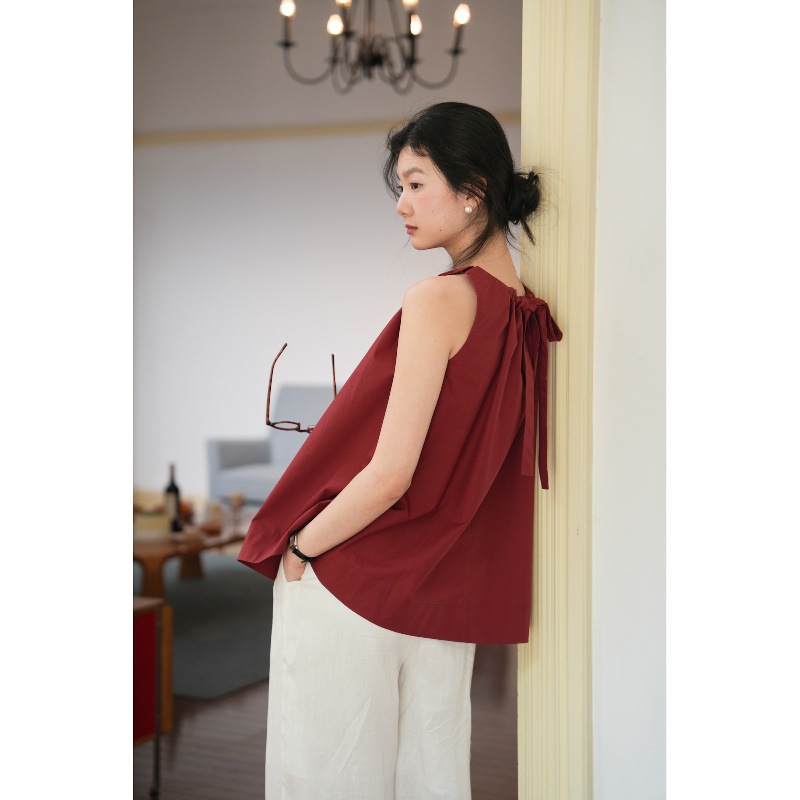 红茶桔梗 法式清冷酒红吊带小衫显白遮肉无袖背心小上衣日常百搭