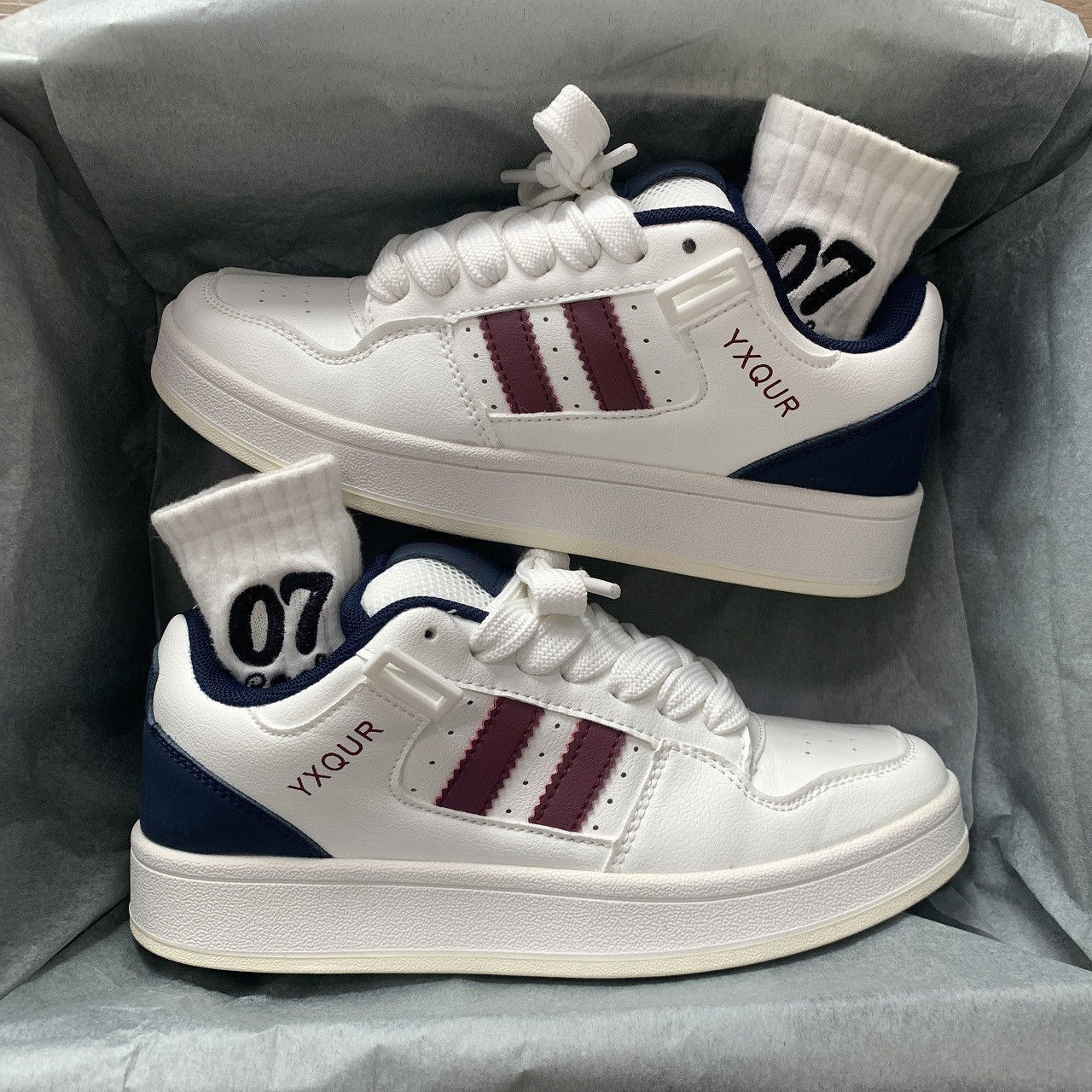小众复古拼色小白鞋女ins潮百搭面包鞋2025新款透气情侣运动鞋女
