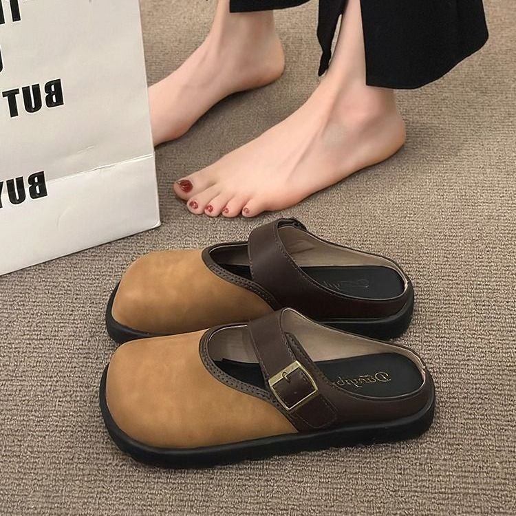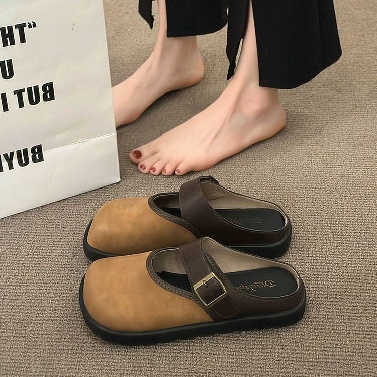 勃肯鞋拖鞋女外穿2025春夏季新款半托女鞋厚底包头半拖鞋法式凉拖