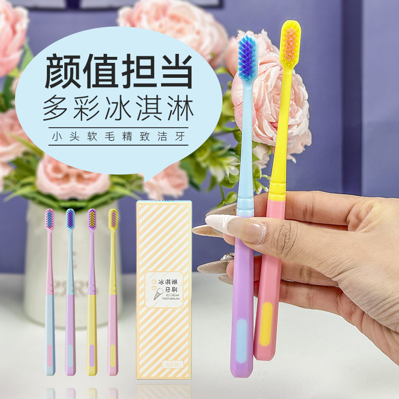 【8支盒装】实惠家庭装冰淇淋配色成人软毛牙刷有效清洁呵护牙龈