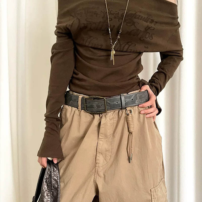 美式y2k复古民族风印花腰带女百搭设计感收腰皮带配裙子牛仔裤带