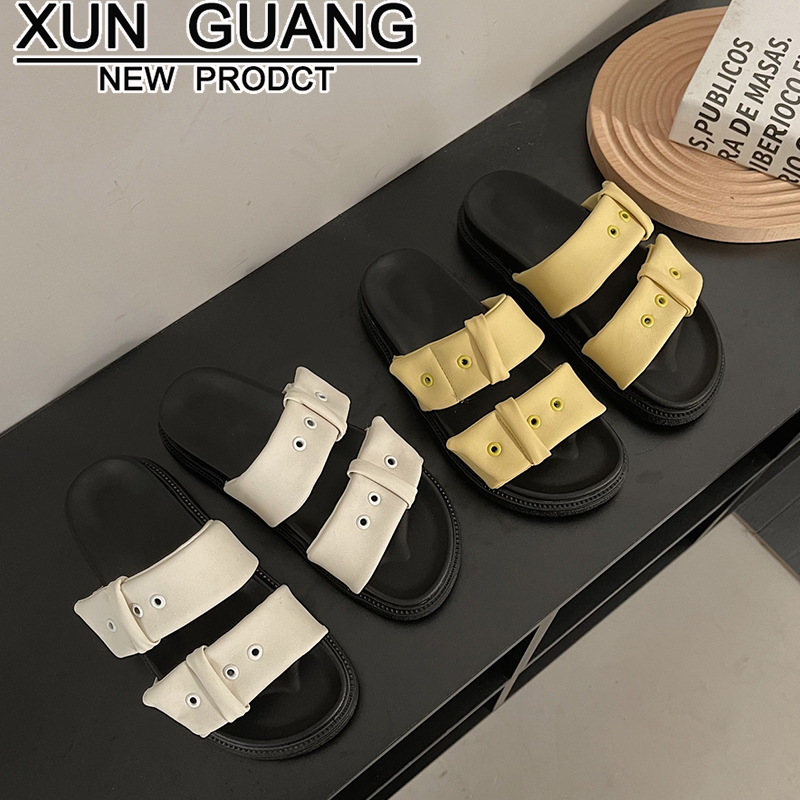 时尚厚底增高拖鞋女外穿夏季新款百搭皮带扣一字休闲沙滩鞋