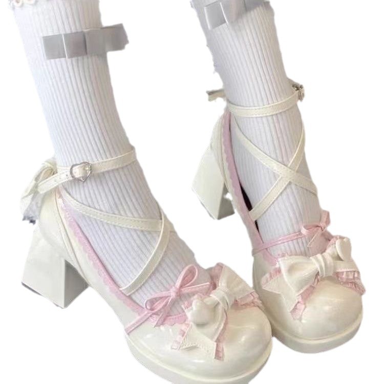 甜美可爱高跟小皮鞋2025新款日系校园学院风蝴蝶结厚底玛丽珍鞋女
