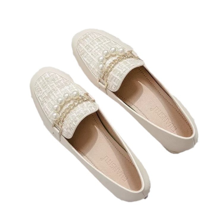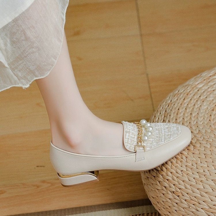 女鞋2025新款一脚蹬软底低跟豆豆鞋百搭配裙粗跟不累脚晚晚风单鞋