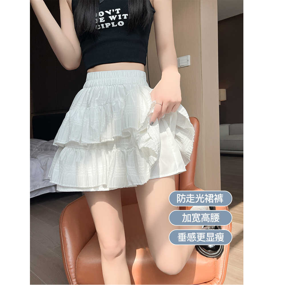 白色蛋糕短裙女夏季2025年新款芭蕾风裙子高腰a字显瘦蓬蓬半身裙