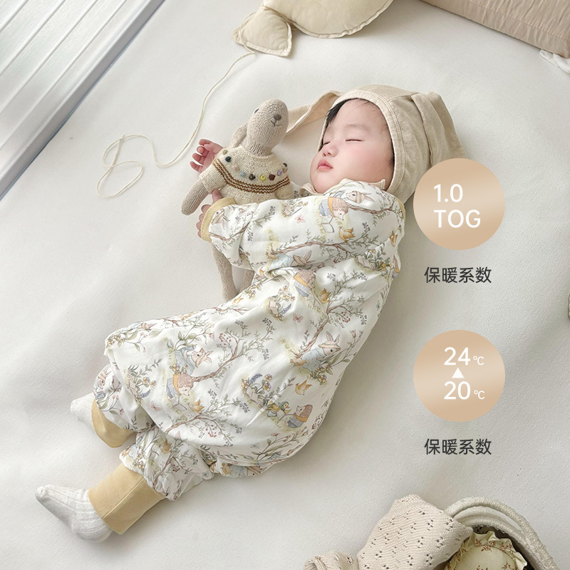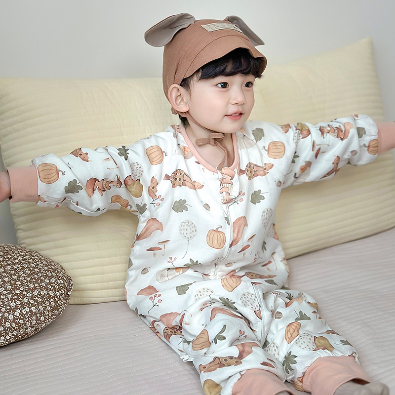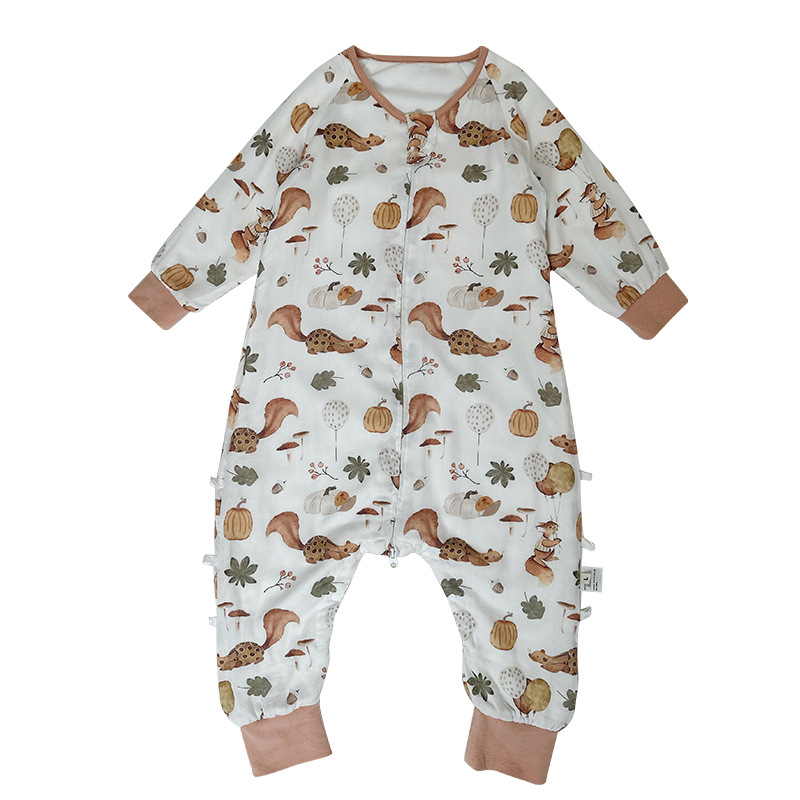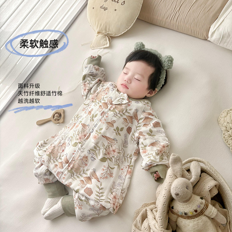 秋冬新款竹棉六层分腿睡袋数码印花婴幼儿连体衣儿童睡袋