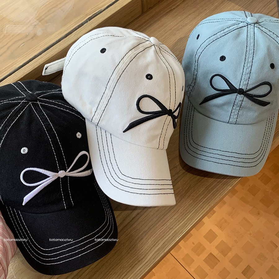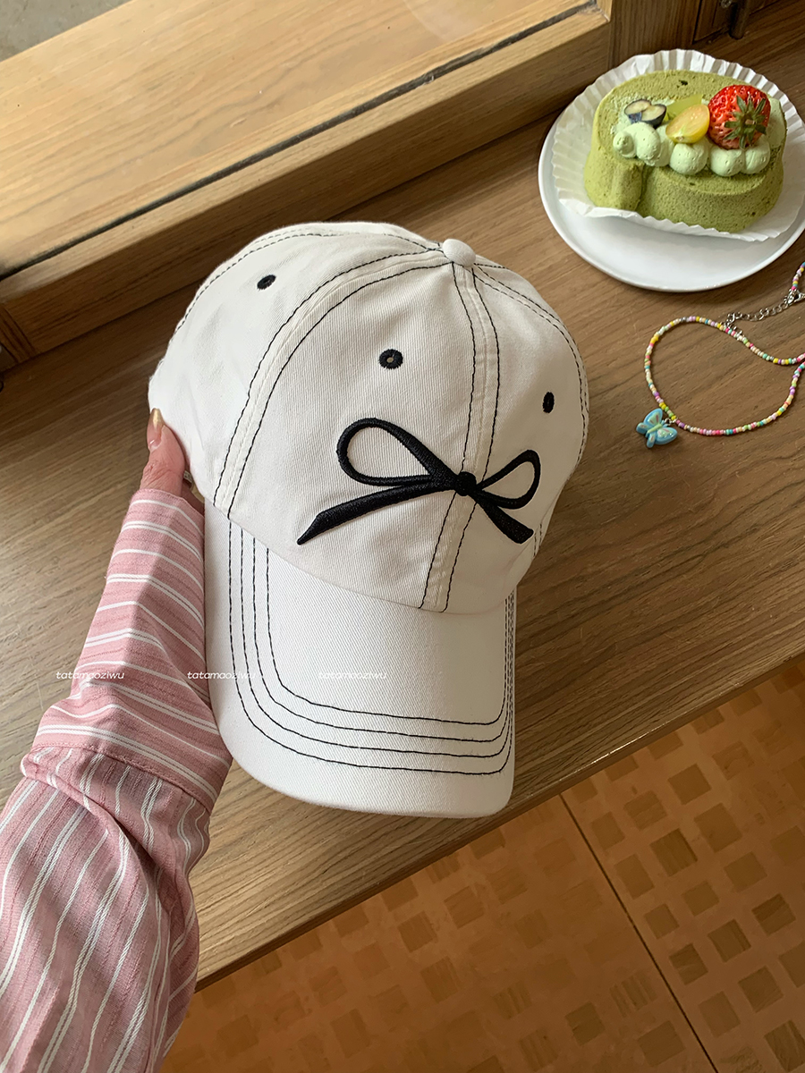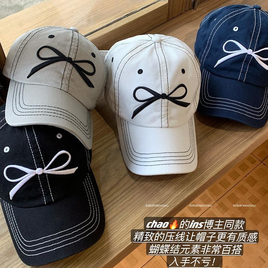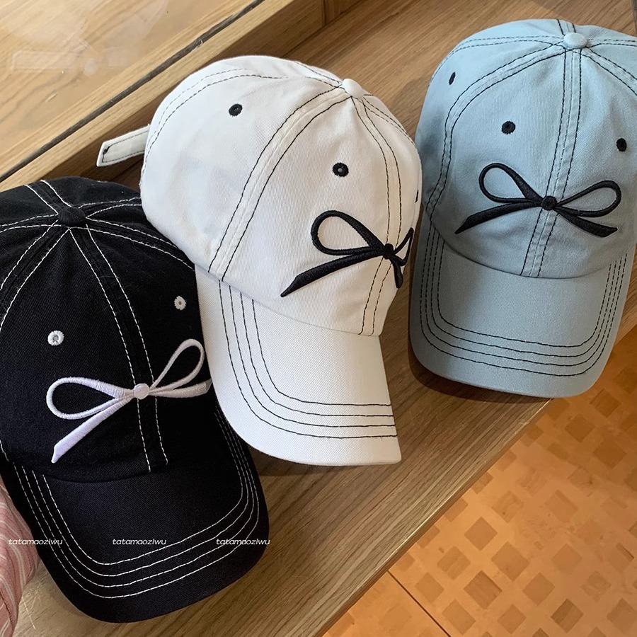 蝴蝶结刺绣帽子鸭舌帽女新款大檐大头围遮阳显脸小棒球帽男款