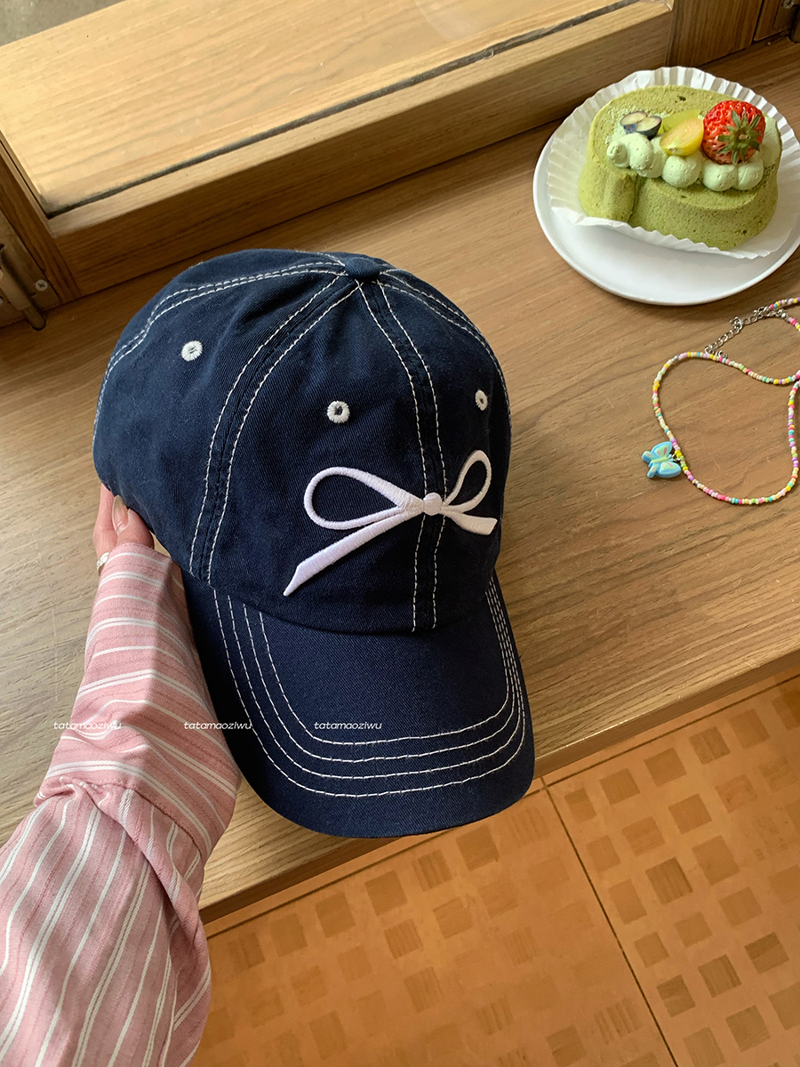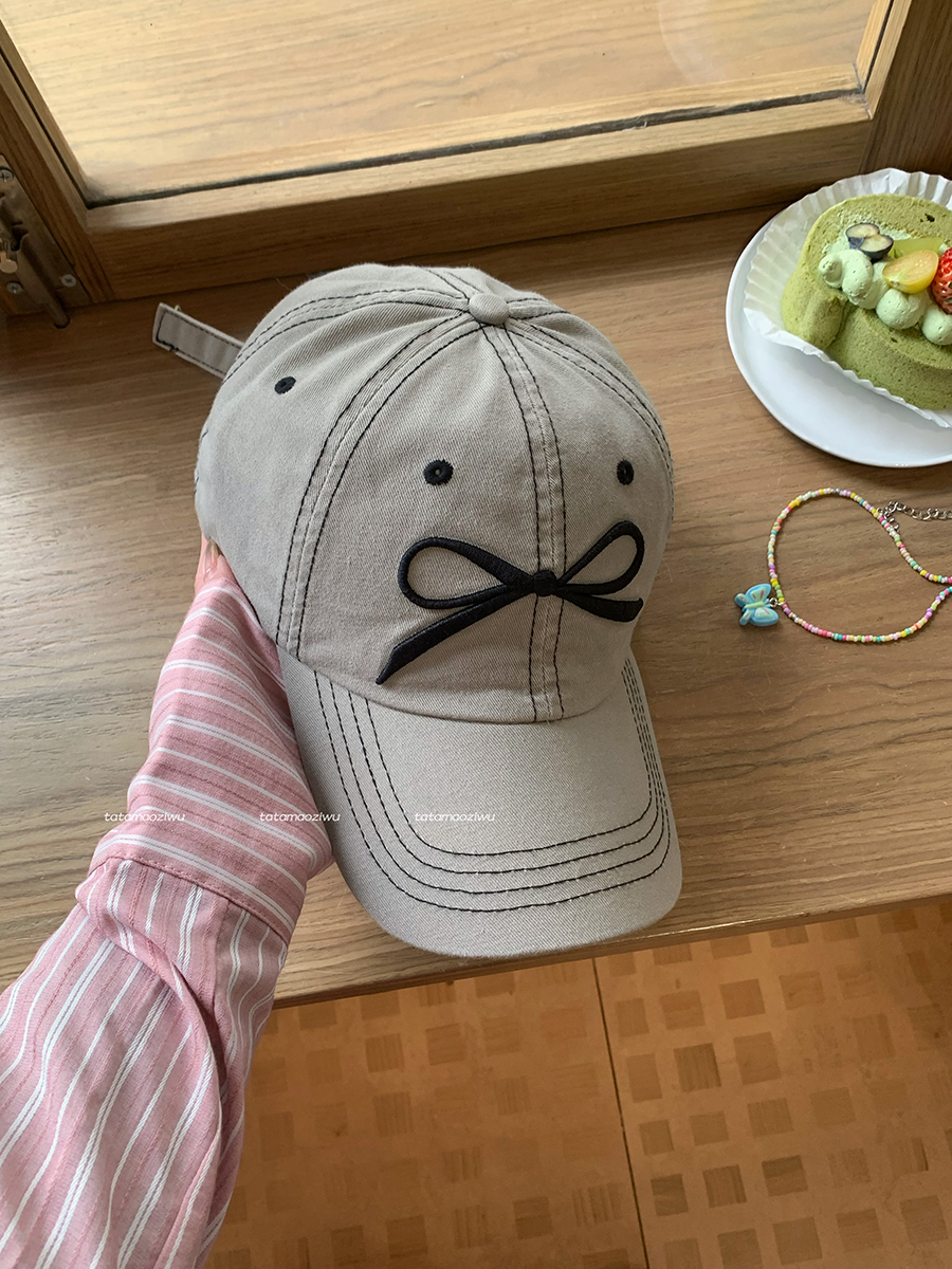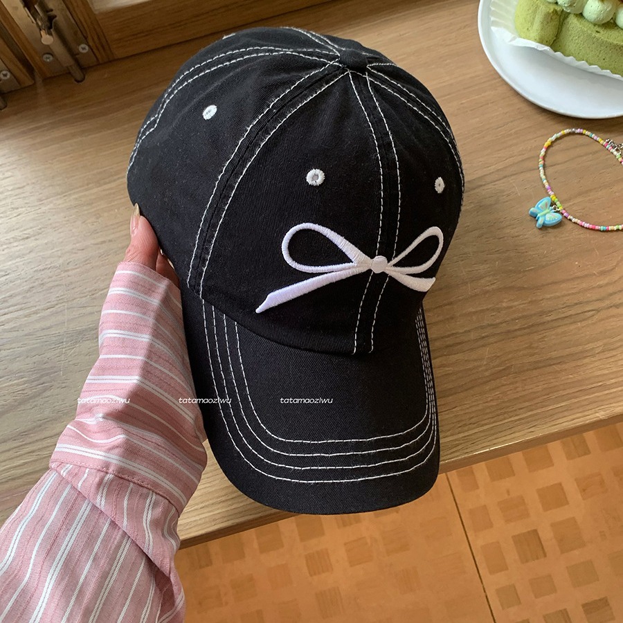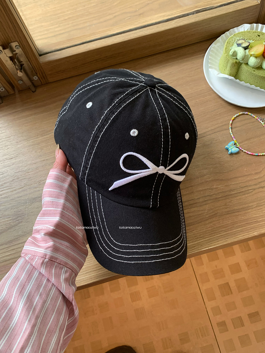 蝴蝶结刺绣帽子鸭舌帽女新款大檐大头围遮阳显脸小棒球帽男款