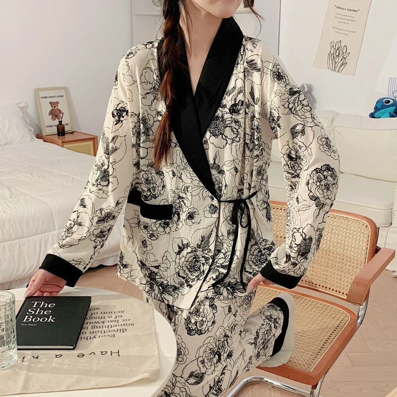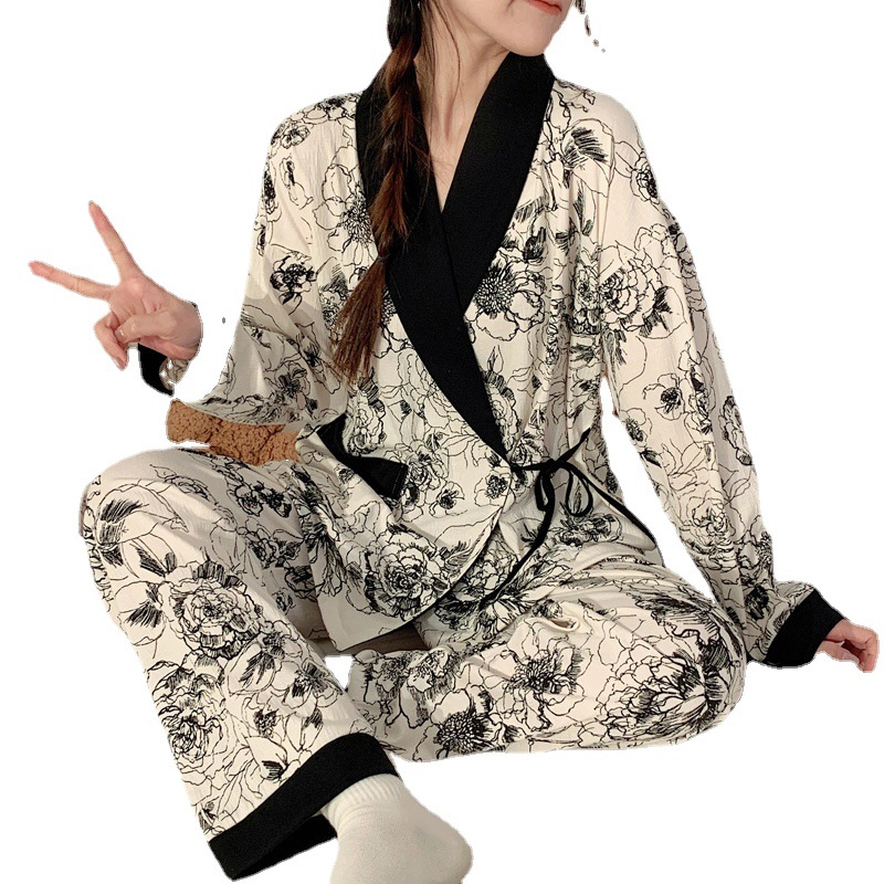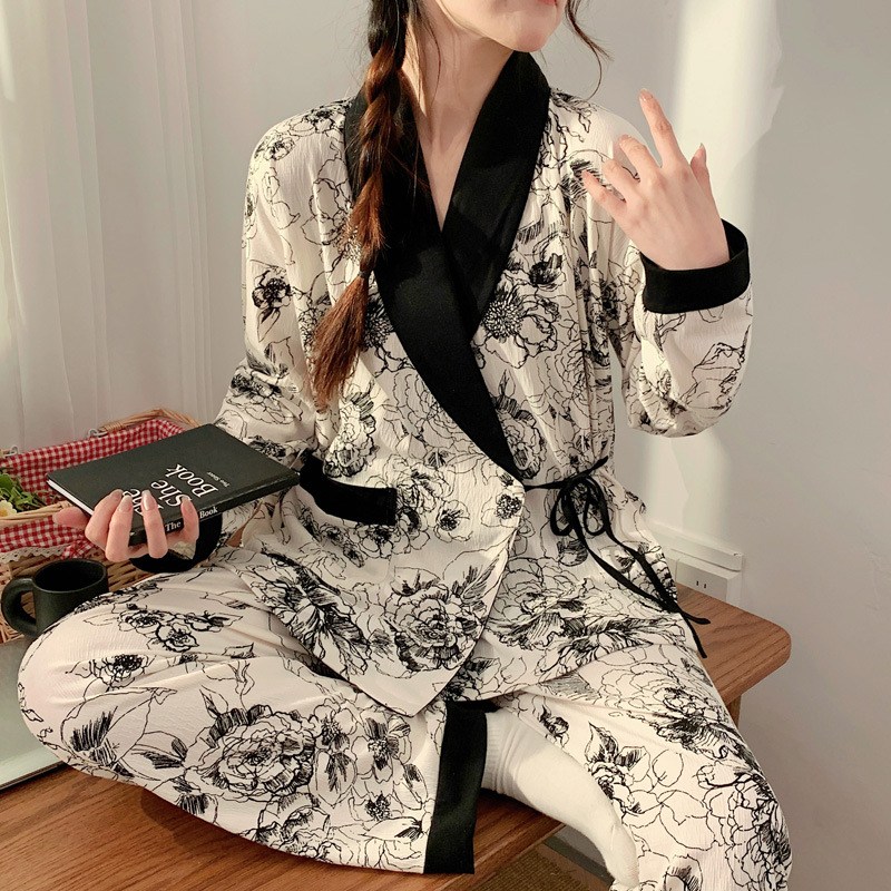 春夏新款针织皱布中国风水墨画和服月子服孕妇哺乳喂奶衣两件套装