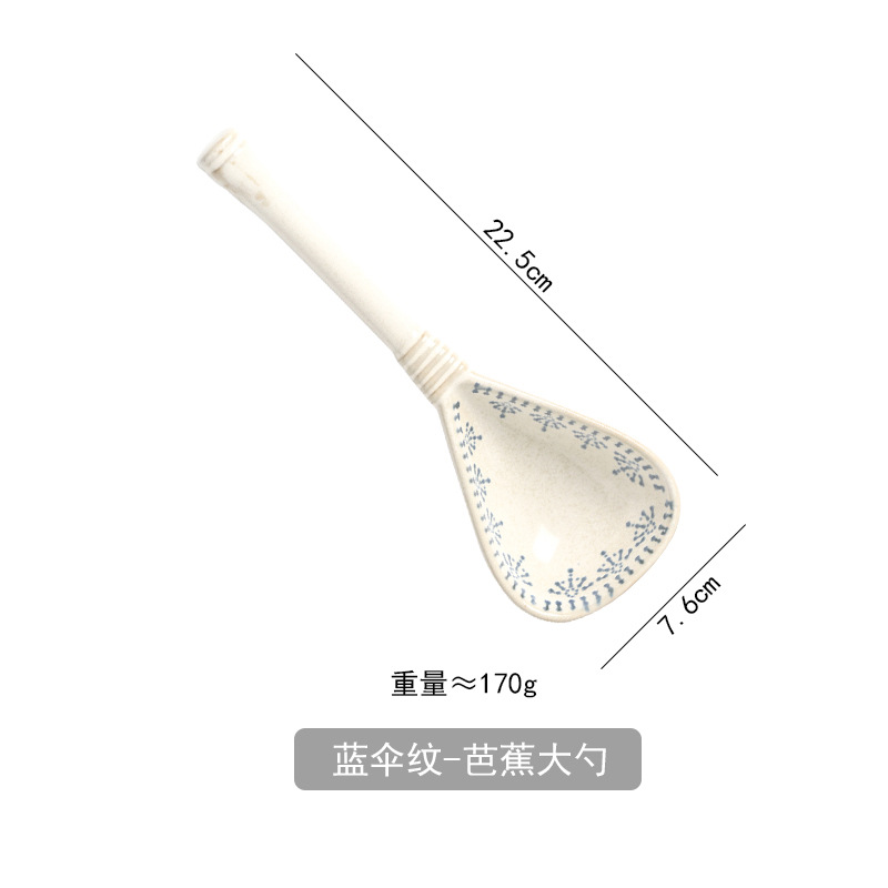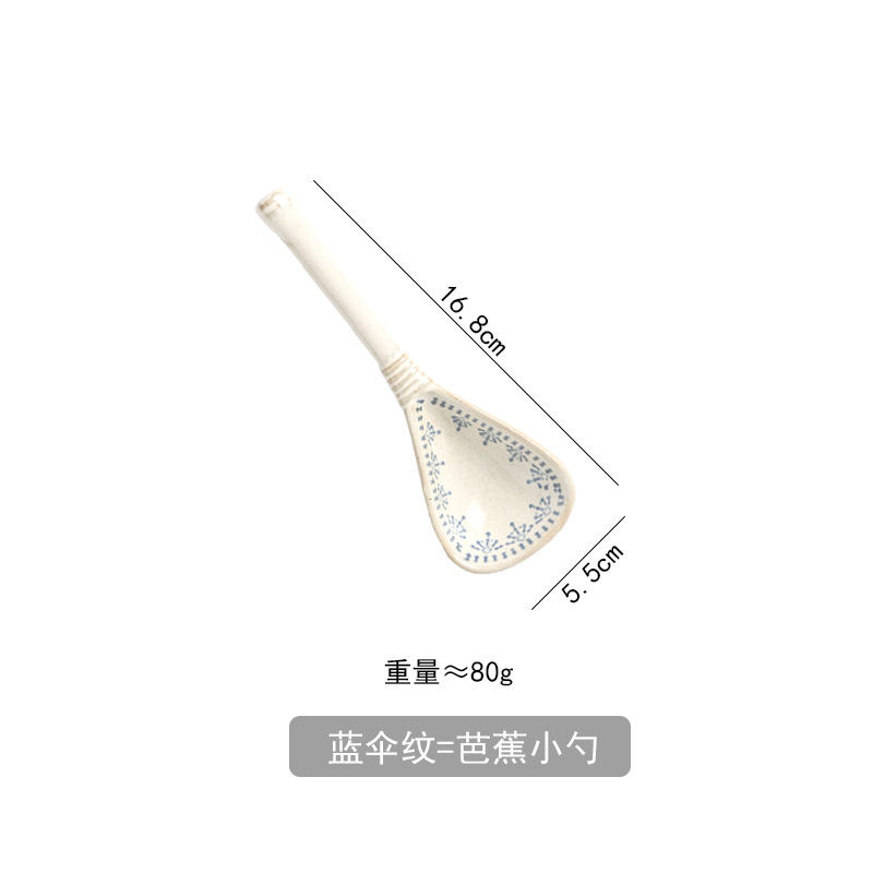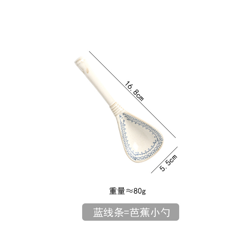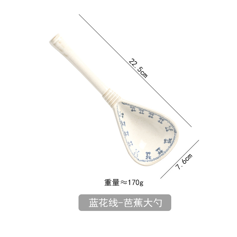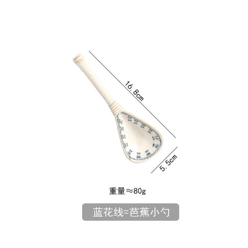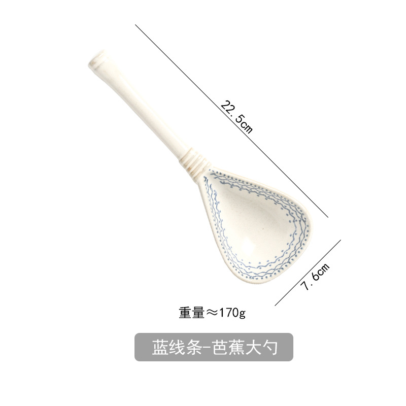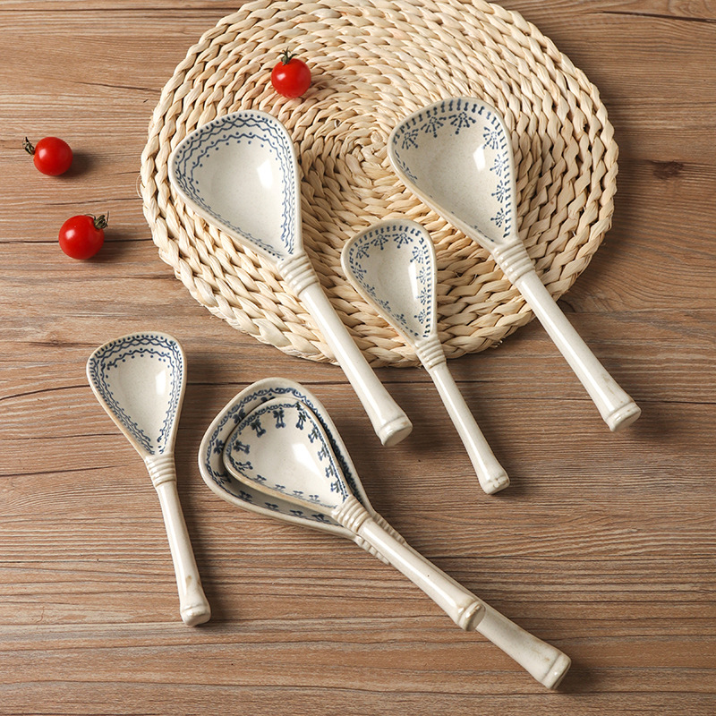 日式青花调羹长柄小勺子粗陶汤匙复古家用喝汤吃饭拉面创意大汤勺