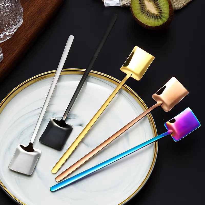 跨境网红长柄304不锈钢钛金咖啡搅拌冰勺 西瓜铁锹甜品冰淇淋尖勺
