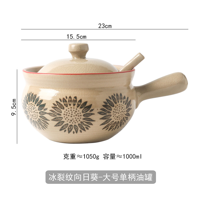 冰裂纹猪油罐陶瓷单柄耐高温带盖荤油罐日式厨房家用辣椒调味专用