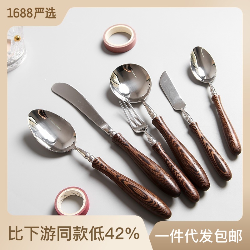 304不锈钢鸡翅木刀叉勺新品出厂酒店餐具