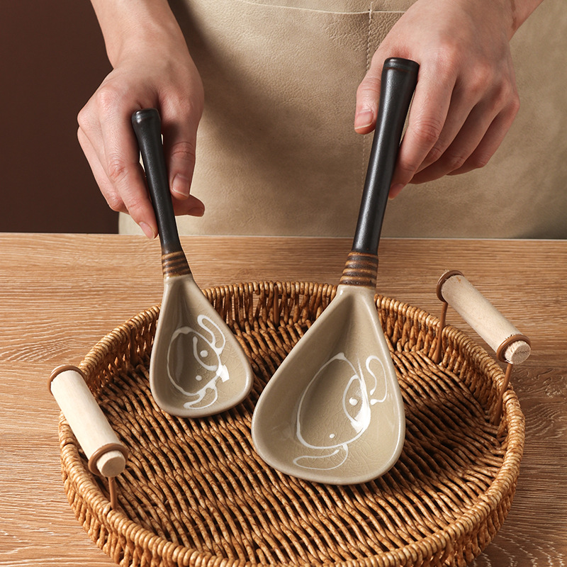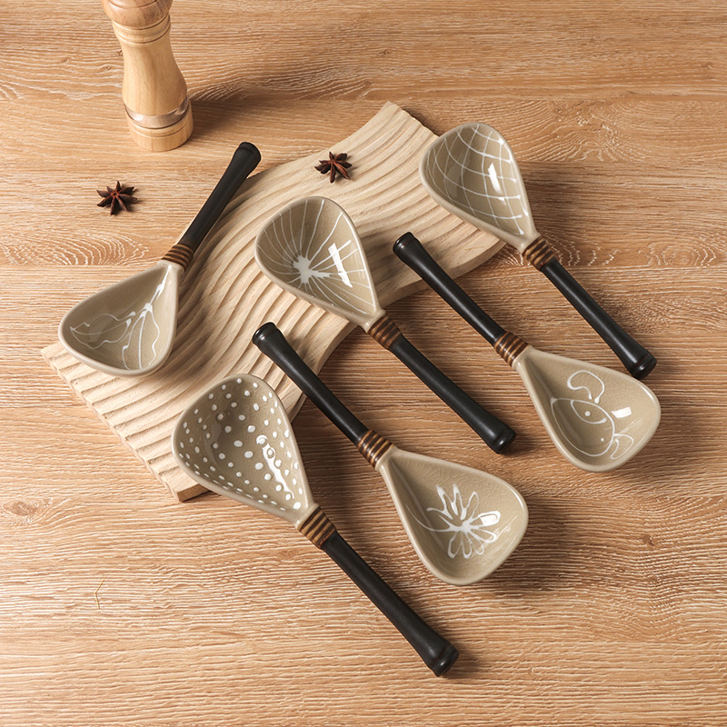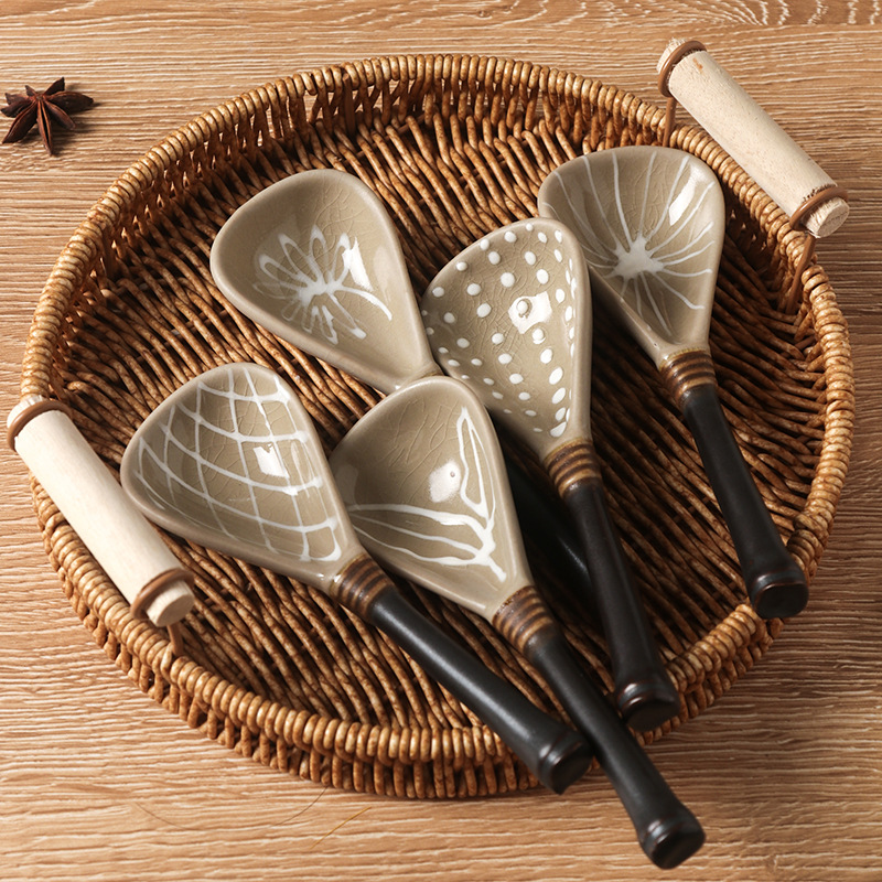 冰裂釉陶瓷勺子创意复古日式喝汤盛汤调羹汤勺家用长柄高颜值汤勺