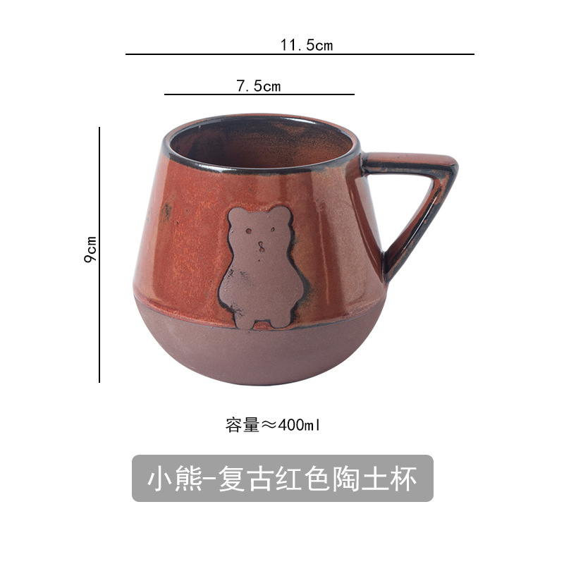 小熊-复古红色陶土杯